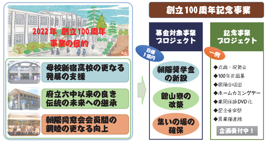 その記念事業の一環として創設され、 奨学金の原資は、多くの同窓生から100周年に向け た募金によるものです。同窓生の母校新宿高校に対 する気持ちに感謝するとともに、改めて御礼申し上