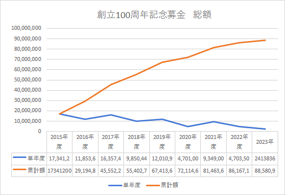 | 集計日 | 100周年募金累計金額 | 館山寮再建募金 |