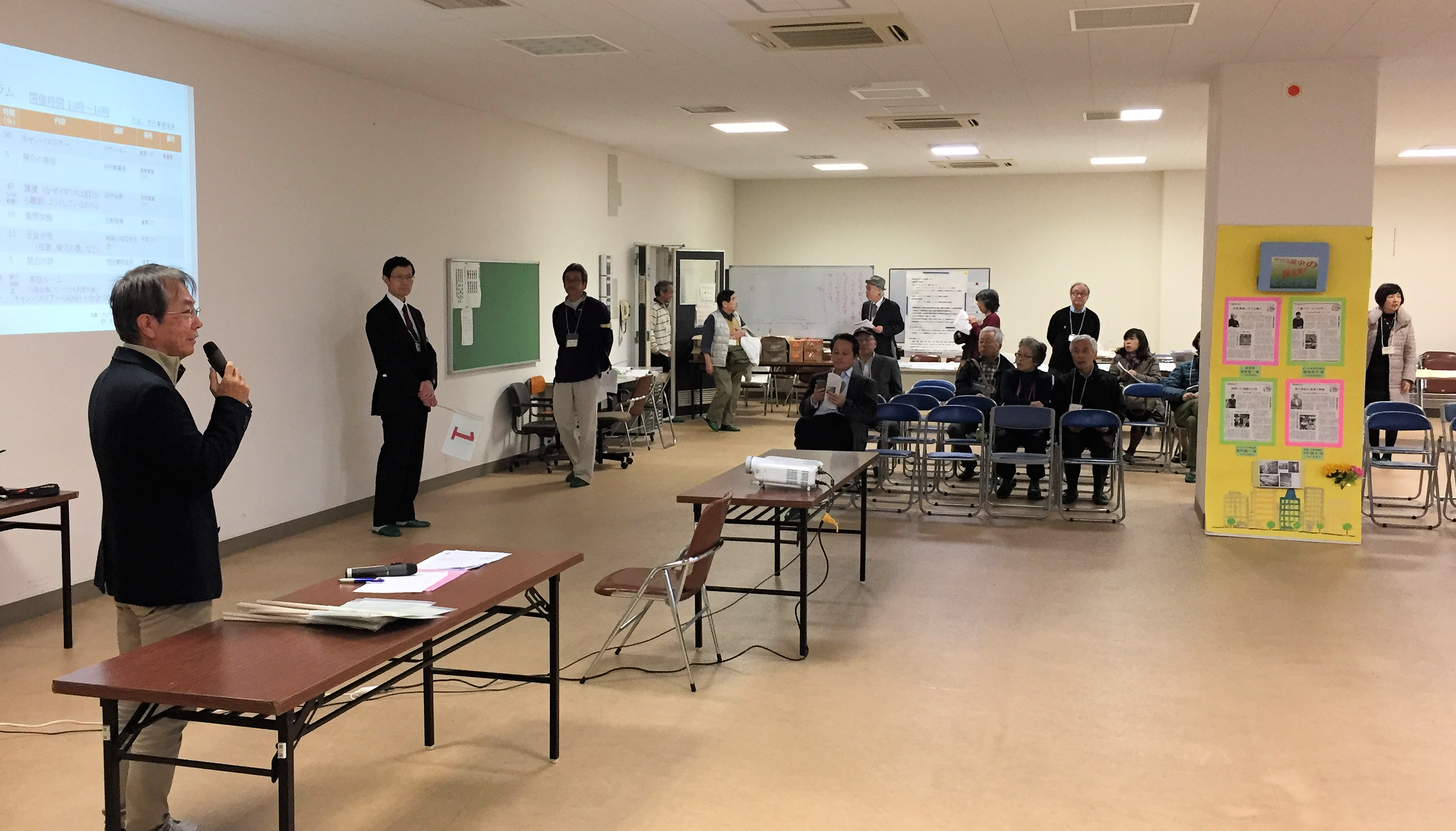 大池100周年記念事業実行委員からホームカミングデーの時間割(予定表)の説明