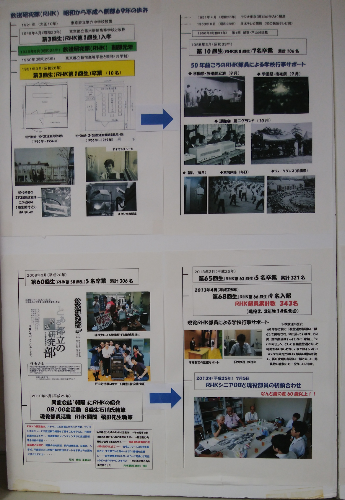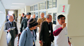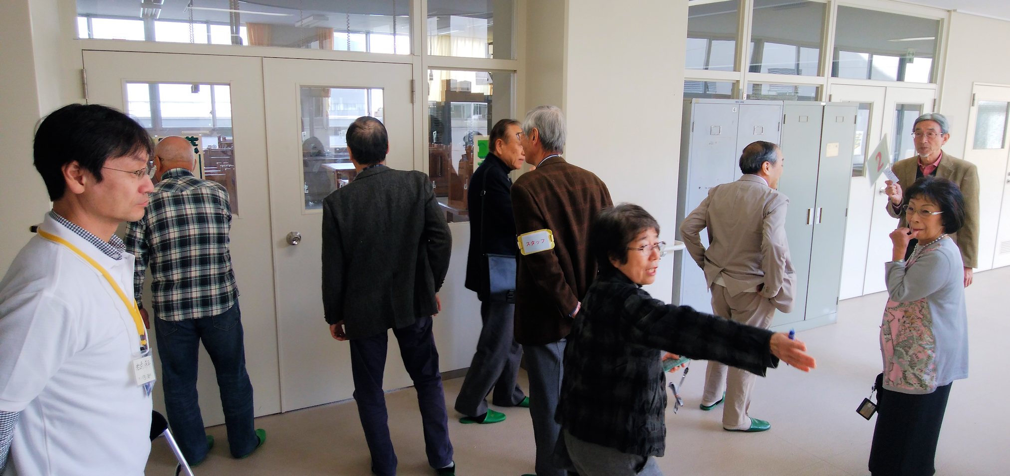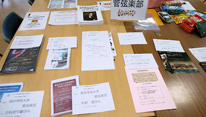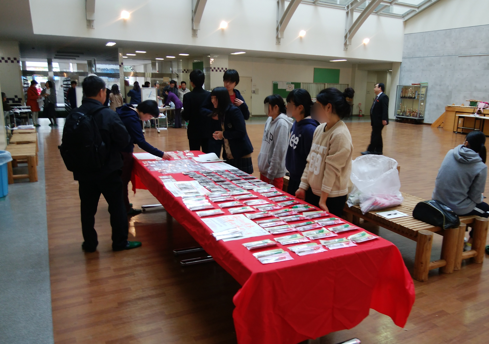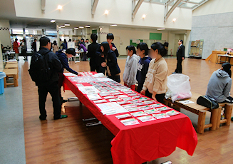 校内見学では校舎内や校庭をグループ単位で自由に見学します。またクラブ単位にコーナーを設けて、各運動部・文化部の歴史などを展示しました。
