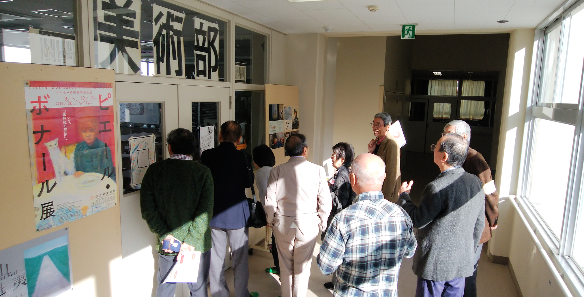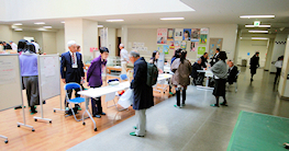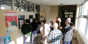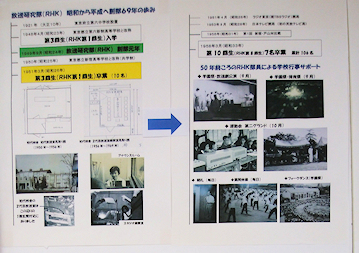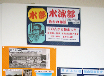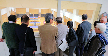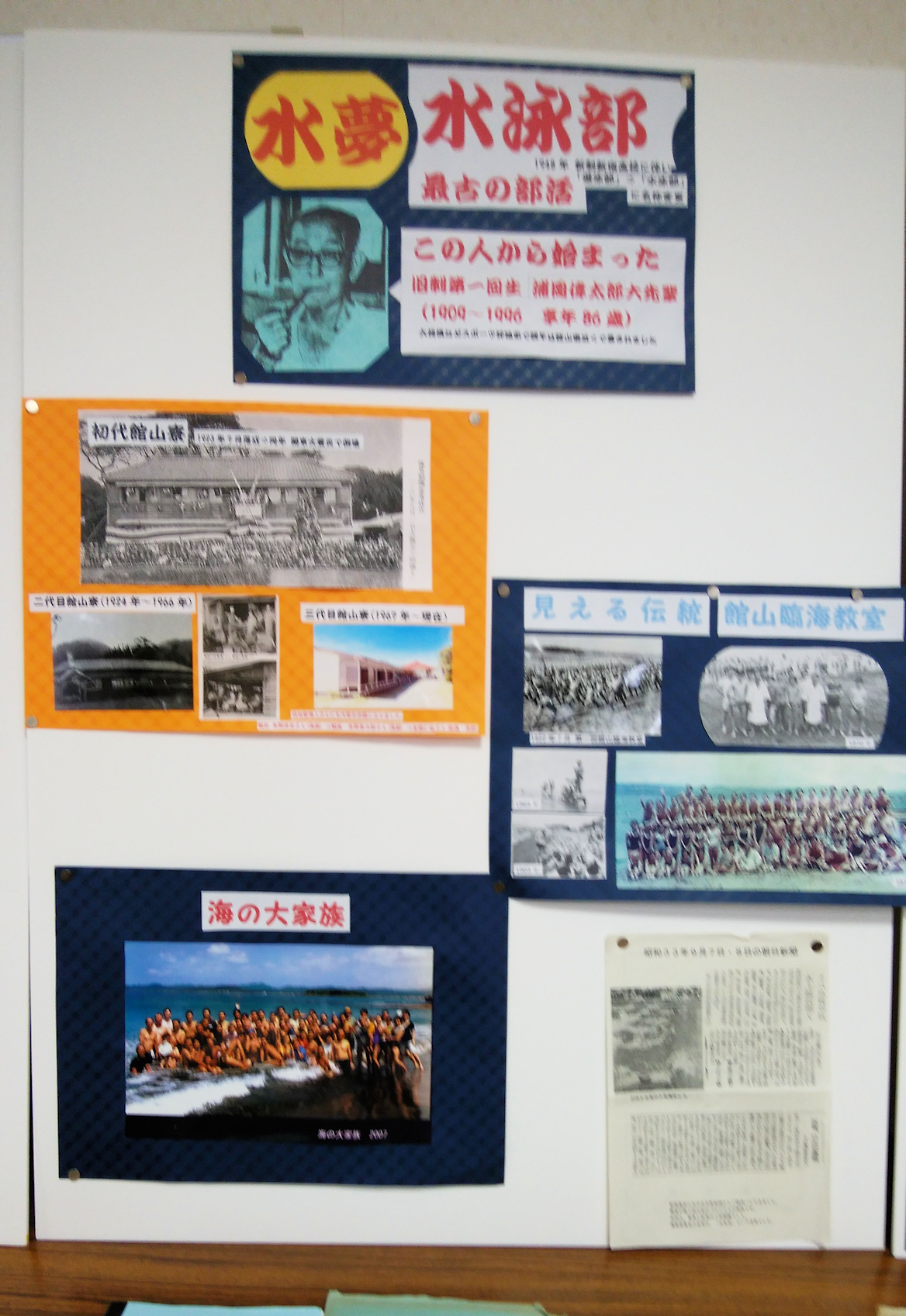 校内見学では校舎内や校庭をグループ単位で自由に見学します。またクラブ単位にコーナーを設けて、各運動部・文化部の歴史などを展示しました。