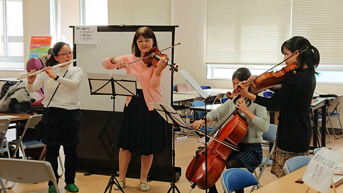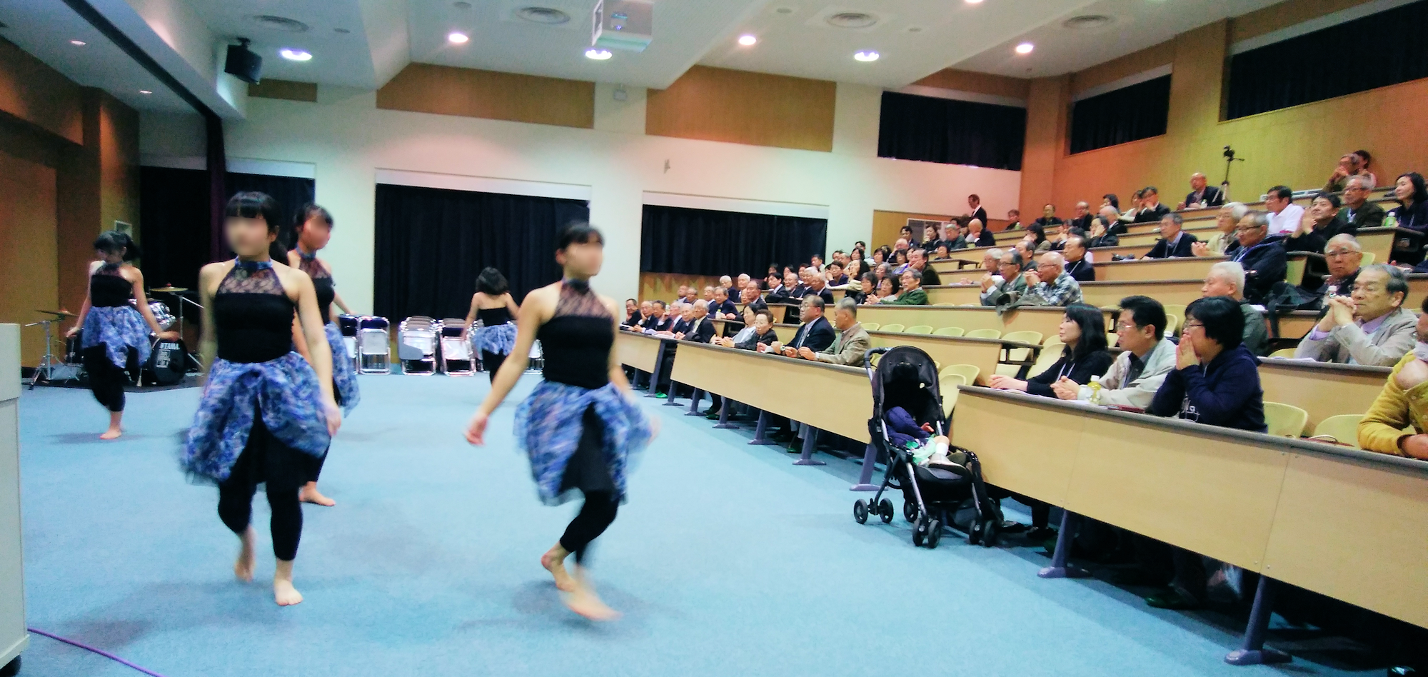 また、現役生のダンス部の演技があり、躍動感溢れるダンスで観衆を楽しませました。更に現役生の軽音楽部も演奏してくれました。軽快なリズムに乗って、聞いている方も大いに身体を動かしました。