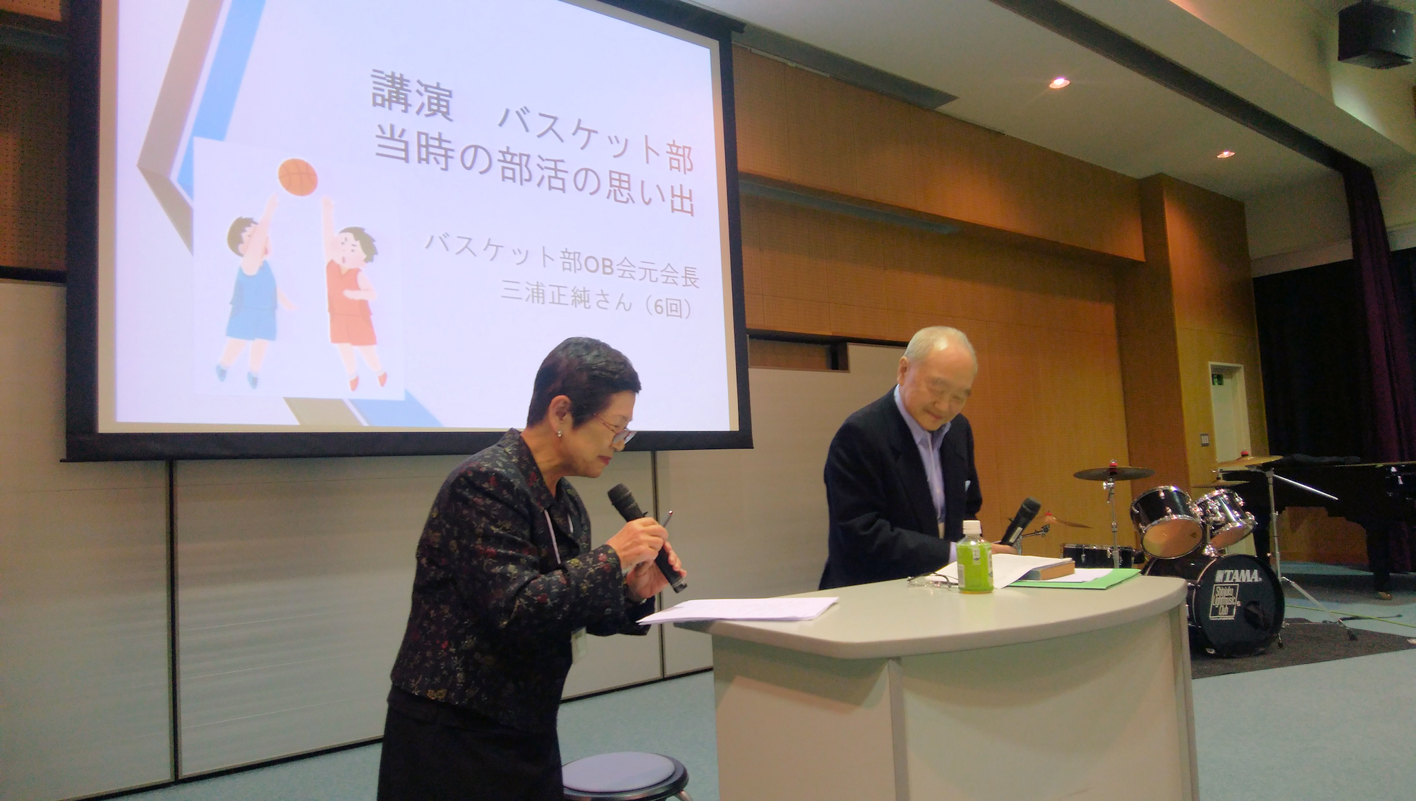 バスケット部OB会前会長の三浦正純さんS06による講演もありました。1953年に東京都大会で準優勝に輝いたことなど、他の部の思い出も含めてお話し頂きました。