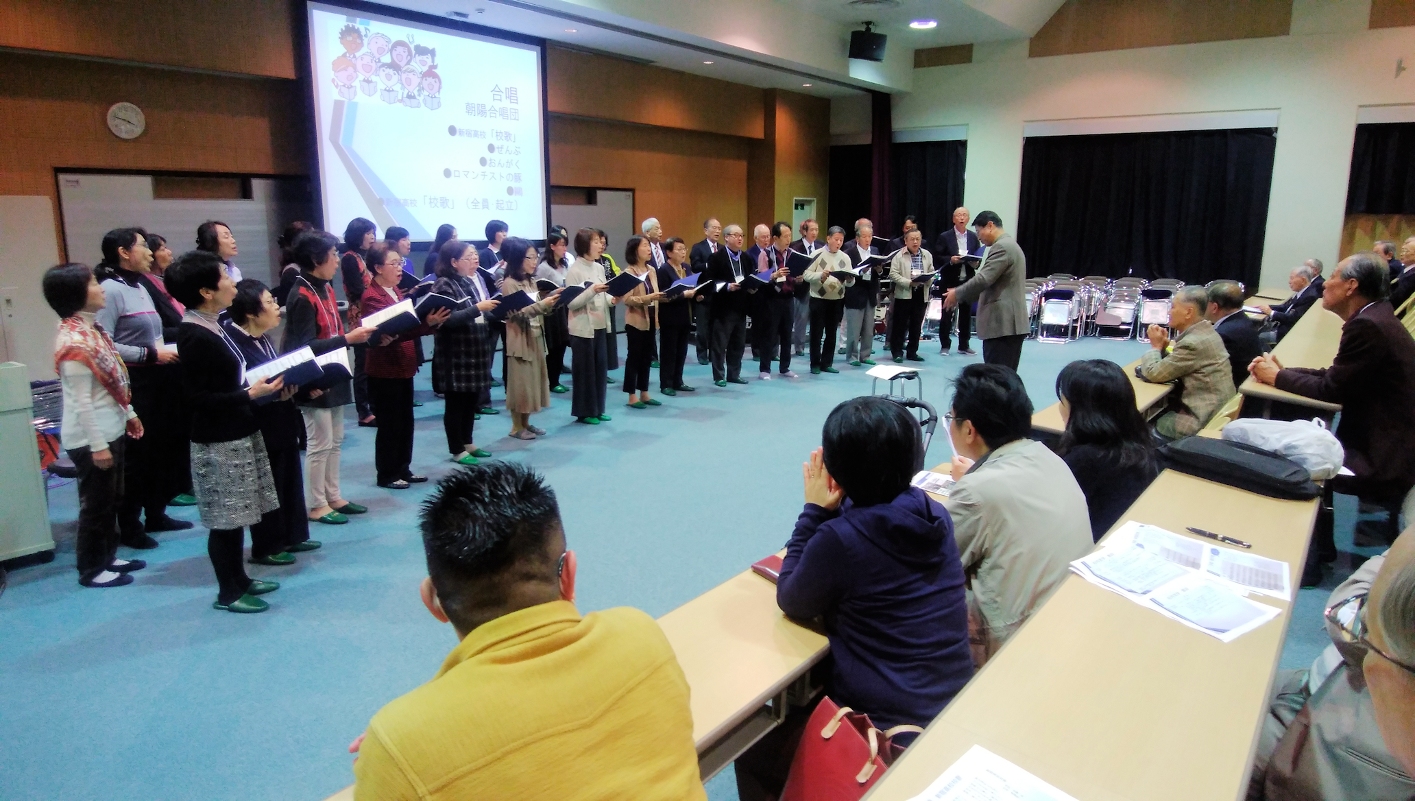 終わりに100周年記念事業の一環で3年前に設立された混声合唱団「朝陽合唱団」の演奏がありました。新宿高校現役の音楽の先生にご指導いただき、日々腕を上げている合唱団です。