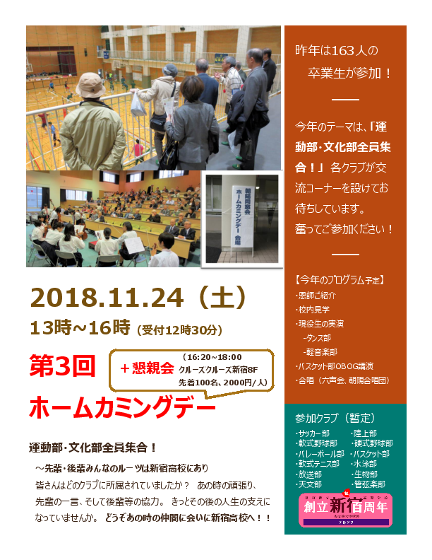 このホームカミングデーのプログラムはこちらをご覧ください。