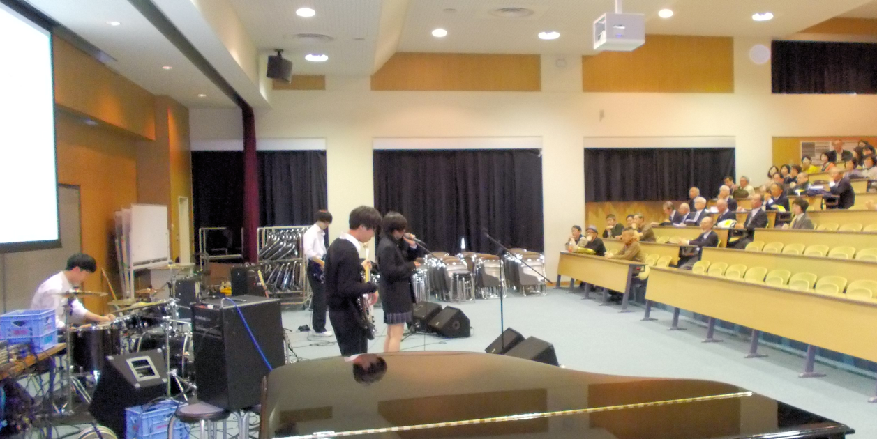 今年のテーマは音楽会。六声会、朝陽合唱団、軽音学部(現役、OB)、管弦楽部(現役、OB)の多数のご参加により、201名の参加者は楽しい時を過ごしました。