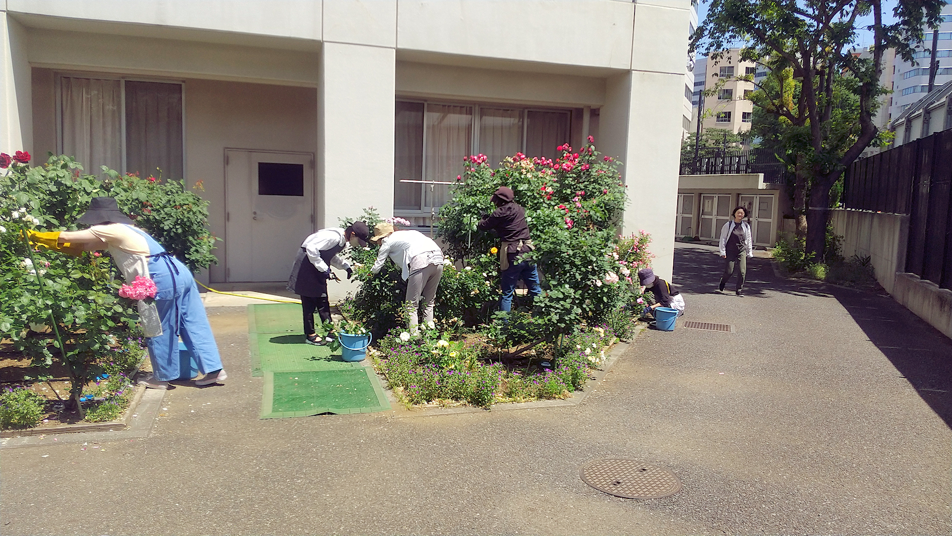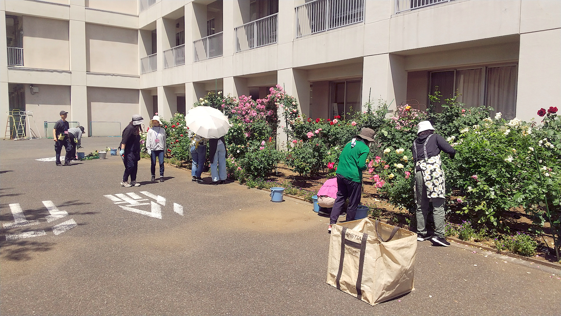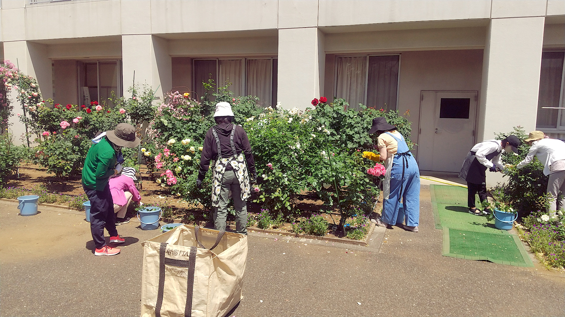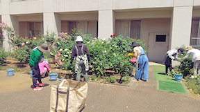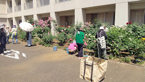 朝陽バラ会のメンバーが朝陽バラ園の手入れをしました。