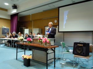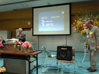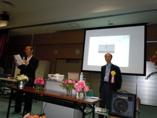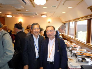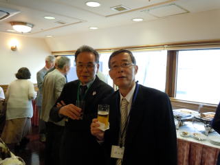 紹介者の菊地大東さん(14回)と講演者の渡辺貞さん(14回)
