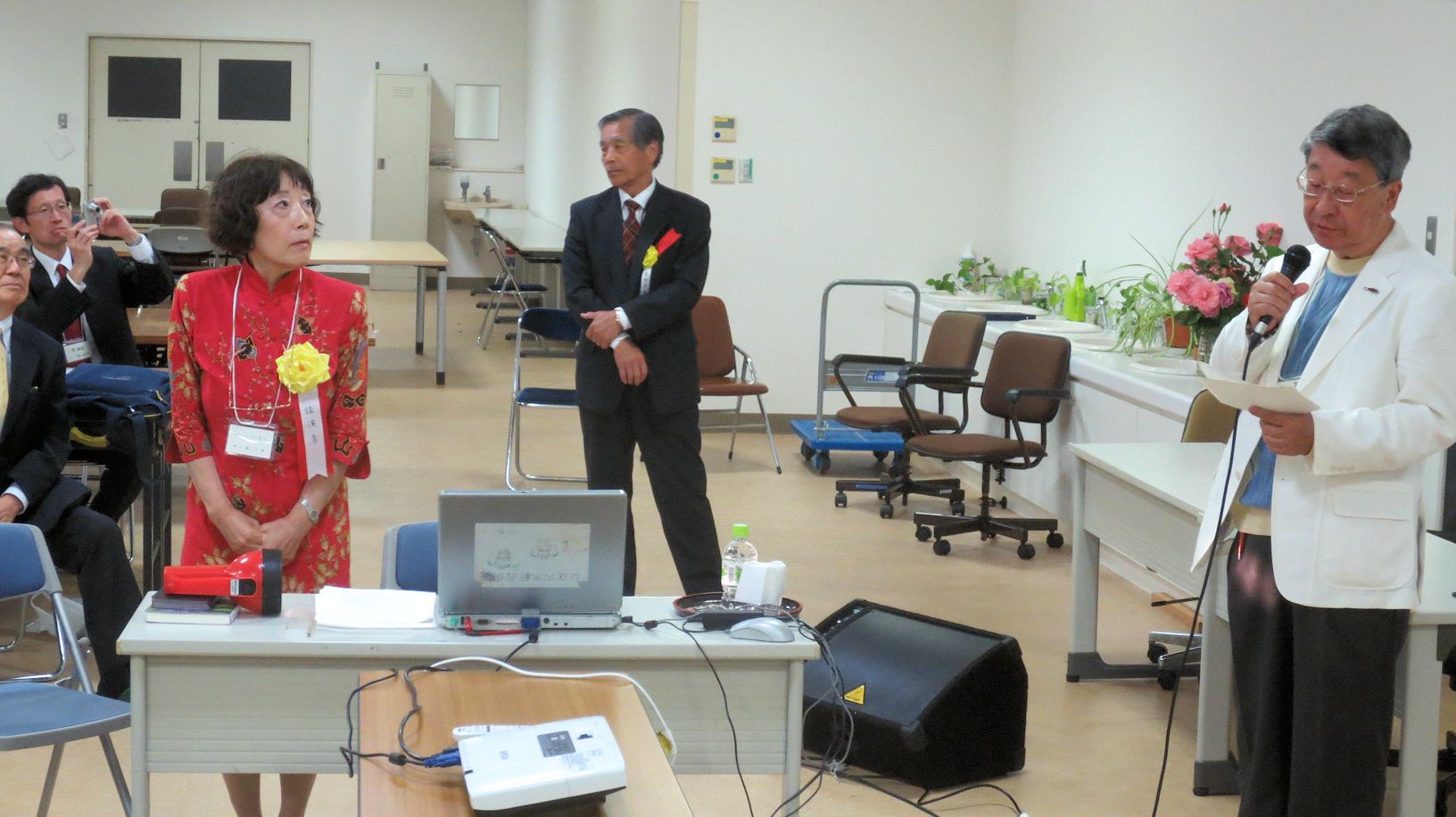以下上から順に、吉村同窓会幹事長(7)による議事進行、新会長に選任された田中俊郎さん(17)ご挨拶、新副会長に選任された小野瑞城さん(34)ご挨拶と総会風景