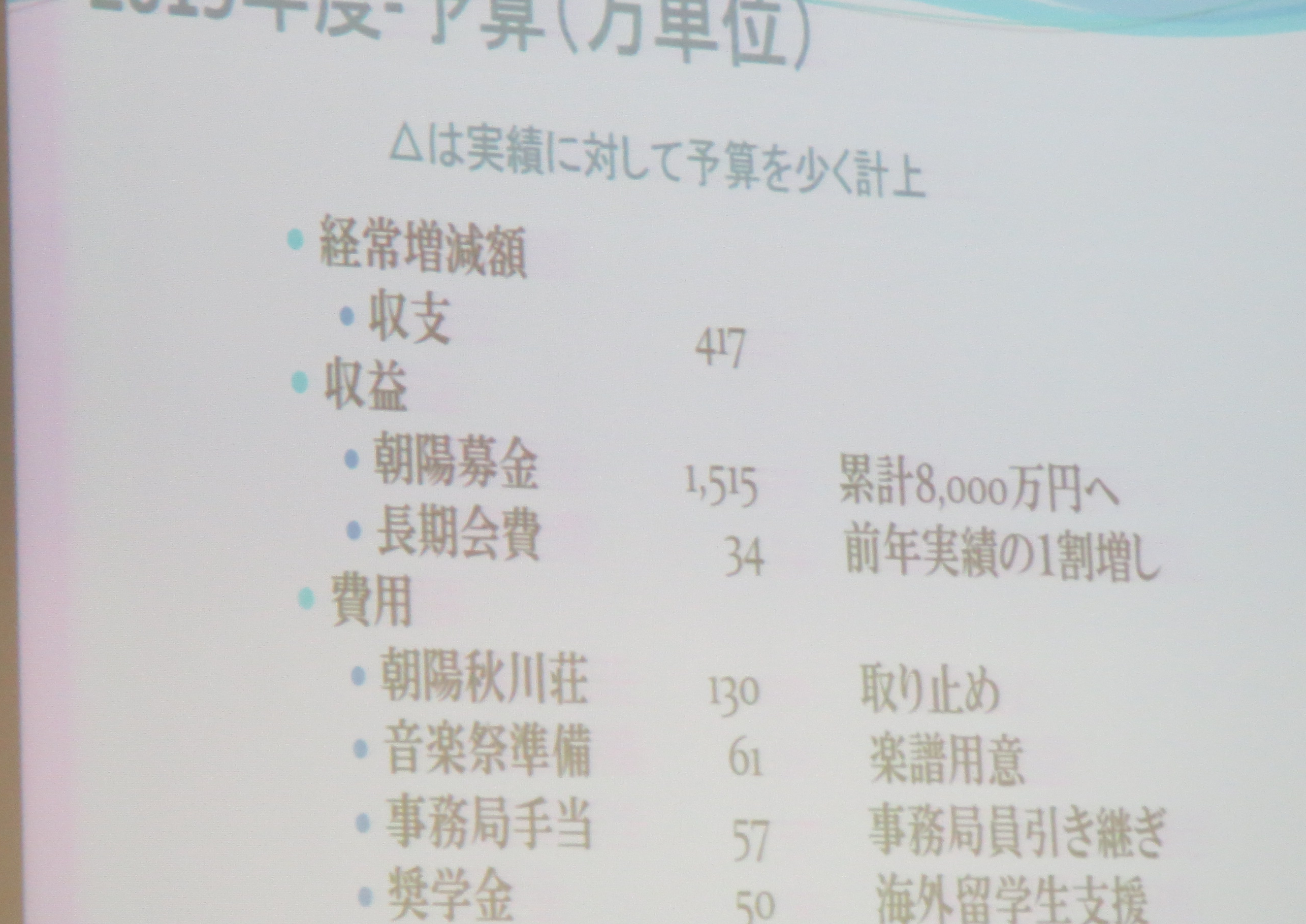 ◆ 議案-5 2019年度予算 詳細は会報「朝陽」68号77頁参照