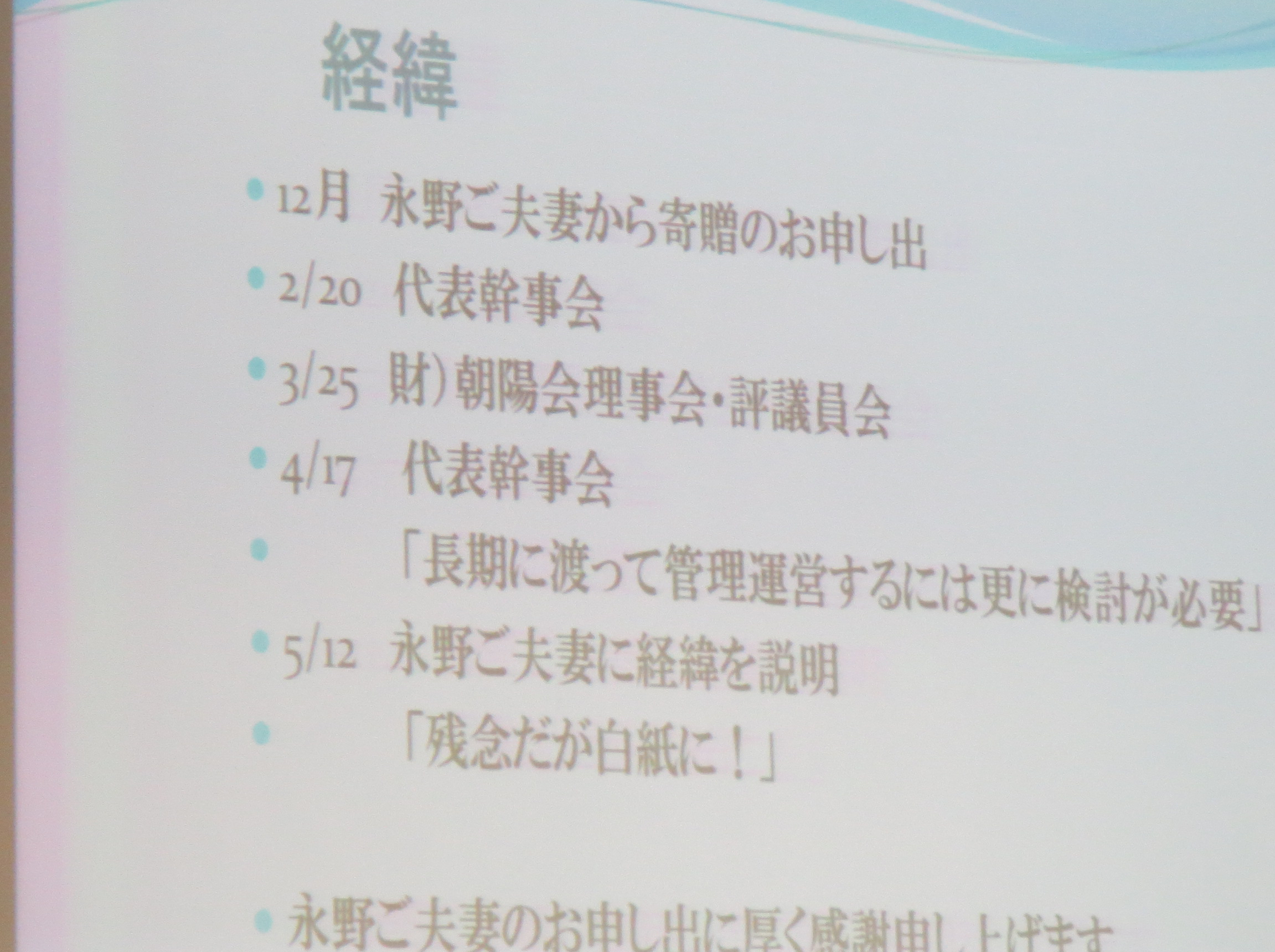 ・朝陽会館の代替案模索継続 |