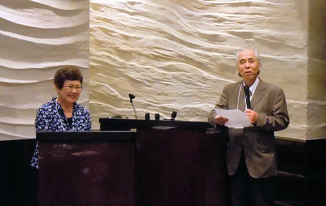 太田公子さん。「なってよかったアナウンサー」と題して、生徒会副会長始め、運動会での応援団長、夏の高校野球の東京都予選応援の飛び入りでの指揮など、活発に活動した高校時代の思い出から、後のアナウンサー生活、福祉行政に取り組もうと立候補し当選した議員生活、そして現在の福祉ジャーナリストに至るまでの道のりを、ユーモアを 交えながら振り返られた。