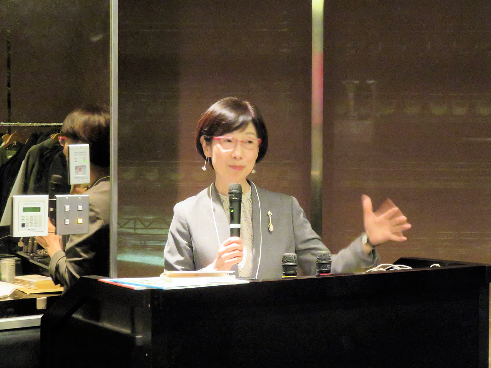 今回のショートスピーチは、29回生大原悦子さん。 大原さんは、津田塾大学を卒業後朝日新聞社に入社、東京本社学芸部記者として文化面などを担当。在職中にハーバード大学で修士課程修了。現在は津田塾大学ライティングセンター客員教員としてご活躍されています。