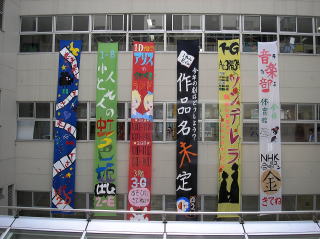 吹き抜けの垂れ幕