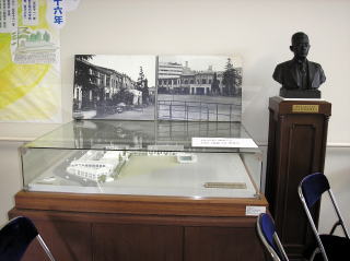 初代校舎模型と初代校長胸像