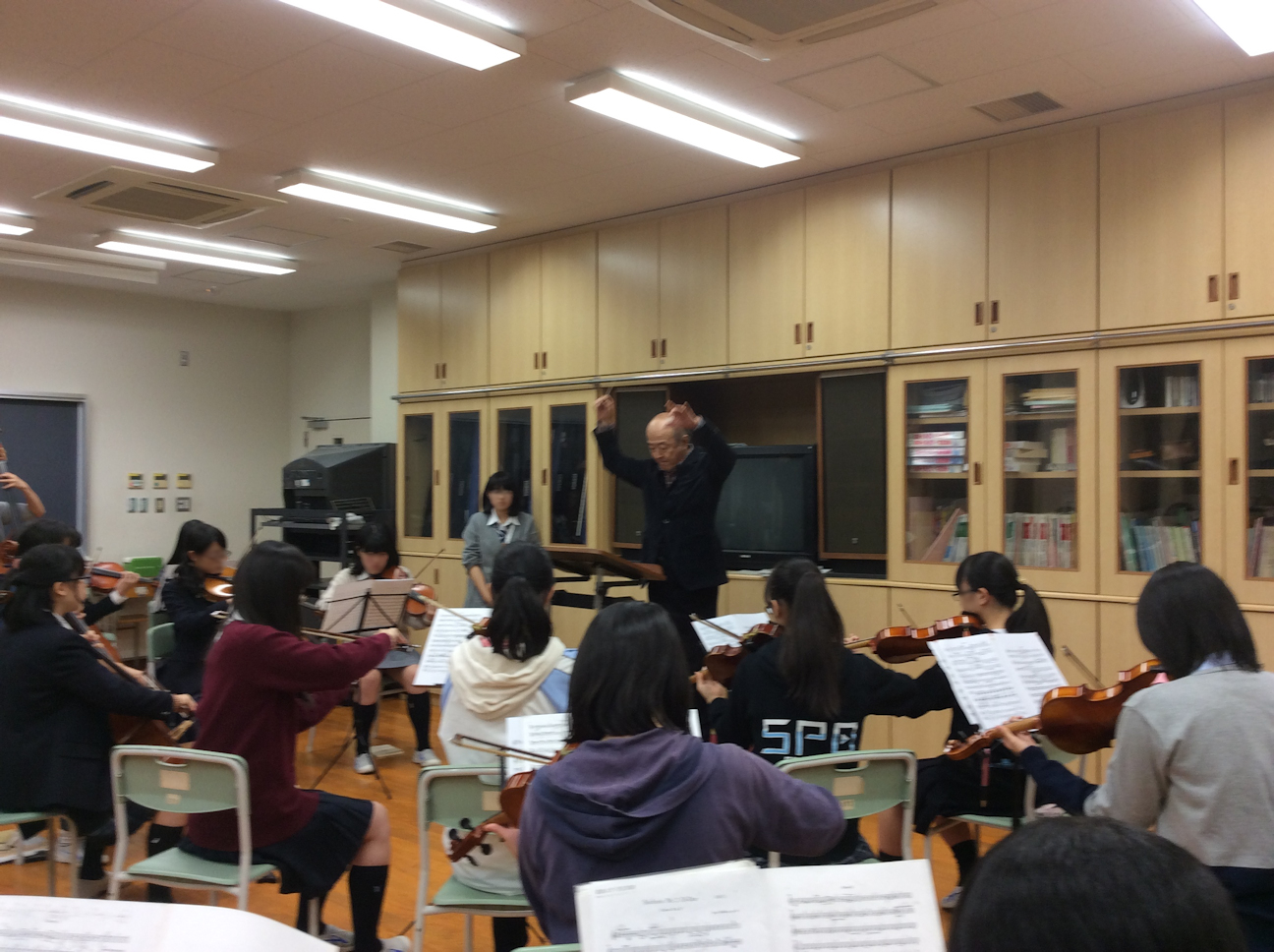 その後、7階音楽室で現役管弦楽部の練習に足を運んでひと時の交流と記念写真撮影など、母校との絆を改めて確かめ合う有意義な半日を過ごされました。
