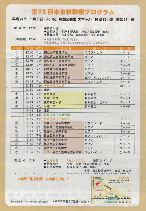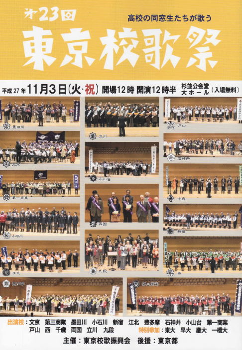 第23回東京校歌祭が今年も11月3日(火・祝)、杉並公会堂で行われます。