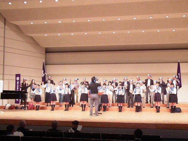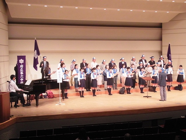小峰先生の指導のもとめきめき力をつけている朝陽合唱団と、東京都を代表する男声合唱団・六声会の皆さん、さらには今年も東京都合唱コンクール金賞受賞するなど都立No.1の実力を誇る現役音楽部員によるハーモニーと声量は圧倒的な迫力で他校を圧倒しました。