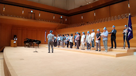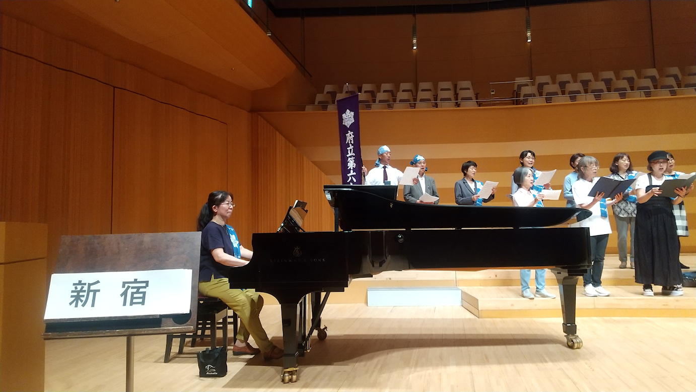 朝陽合唱団を中心とする同窓会メンバーが、新宿高校校歌、六中健児の歌、の歌声を会場一杯に響かせました。