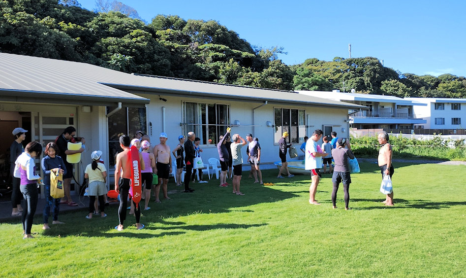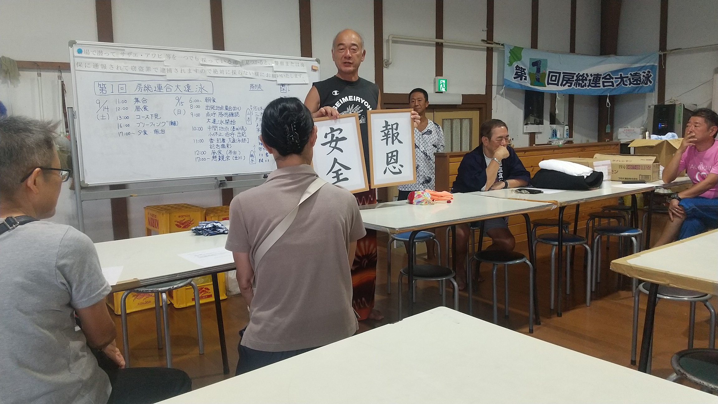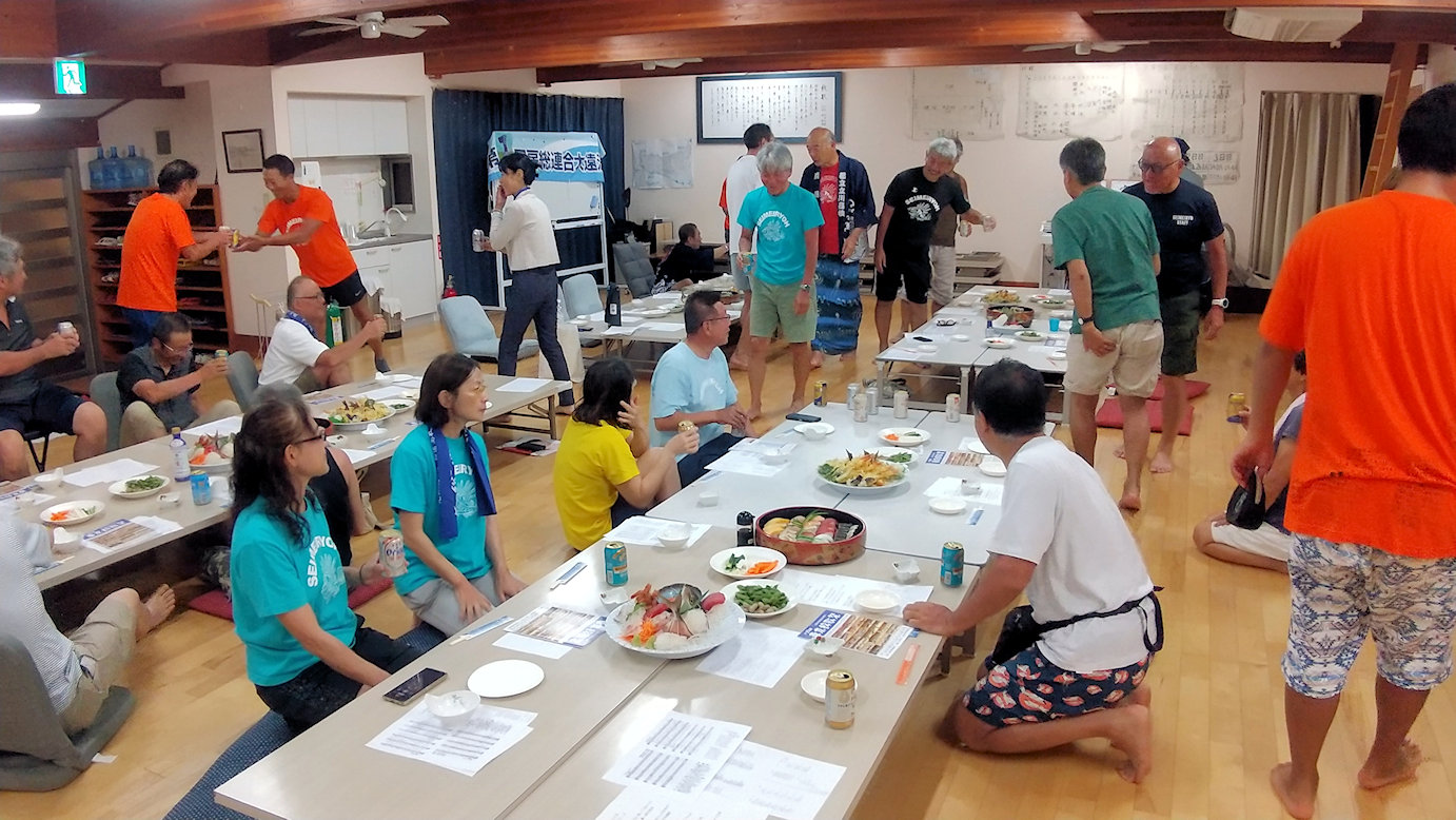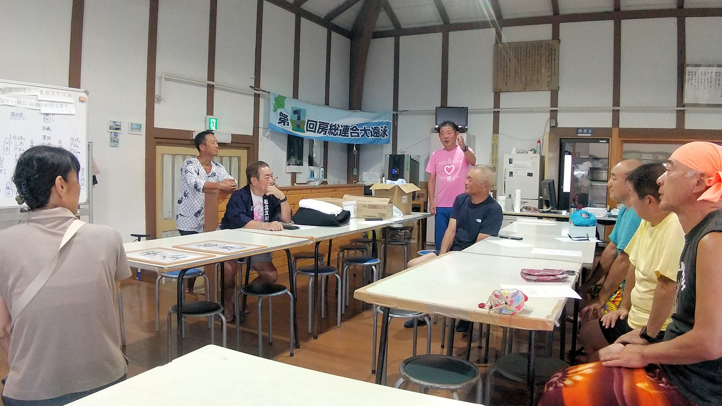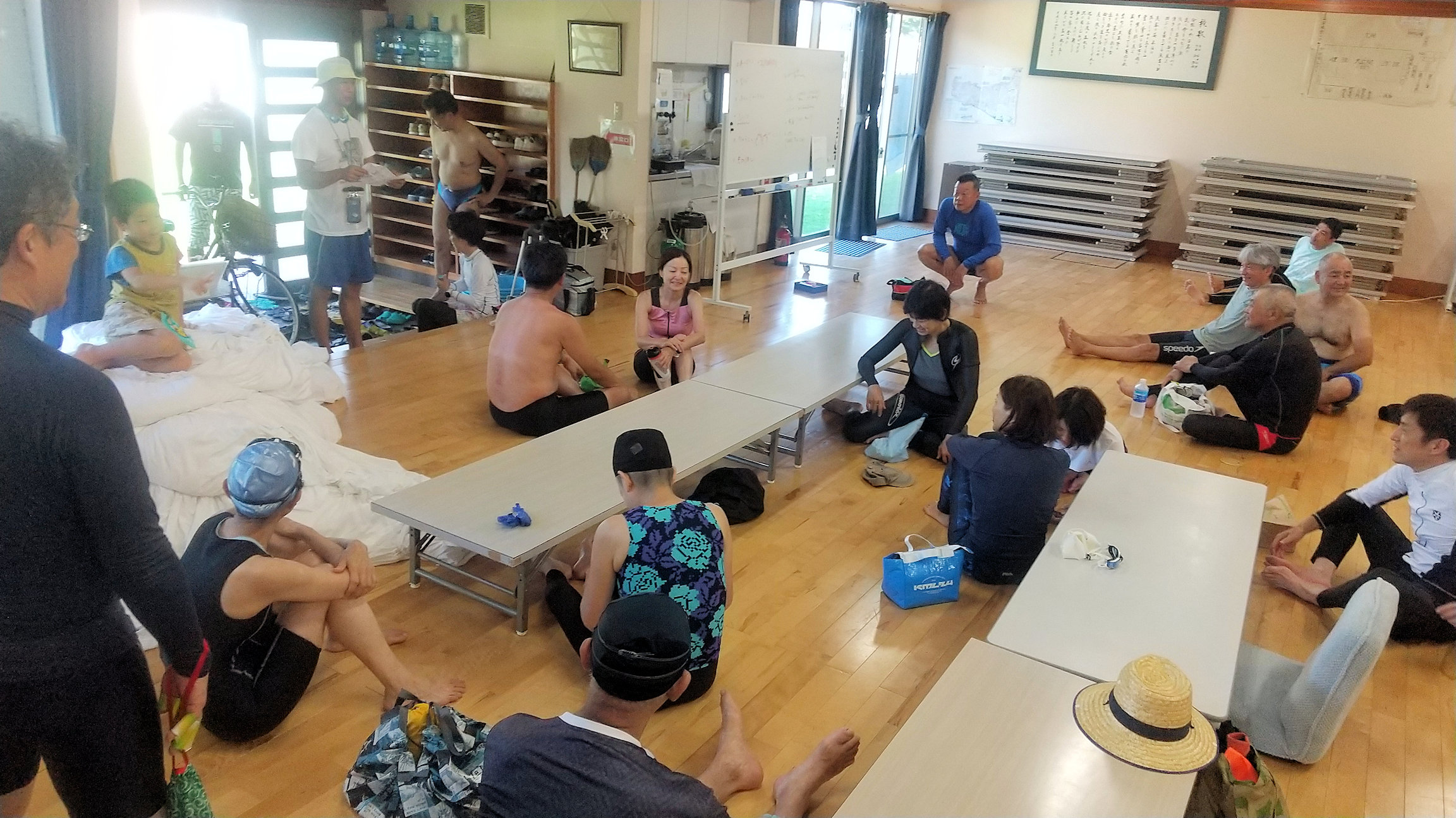 大遠泳前日のブリーフィング前のひと時(その1)