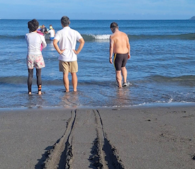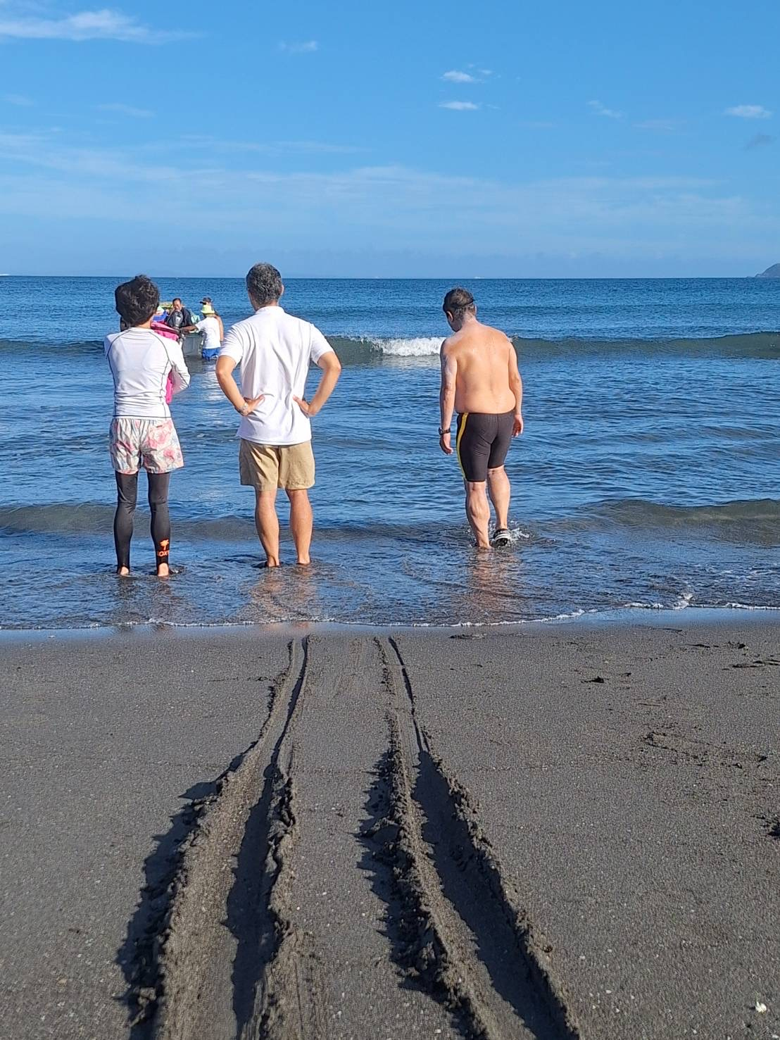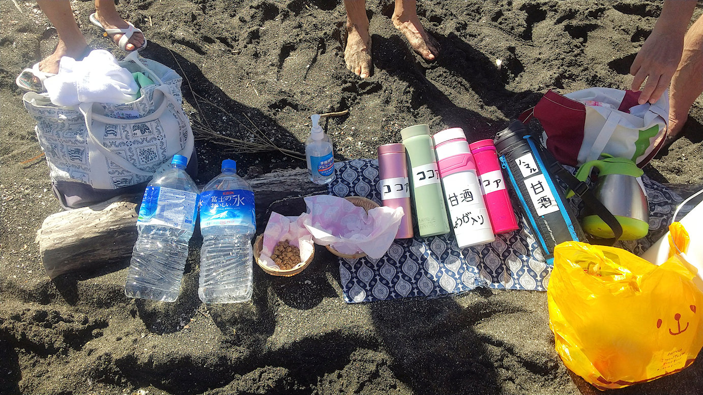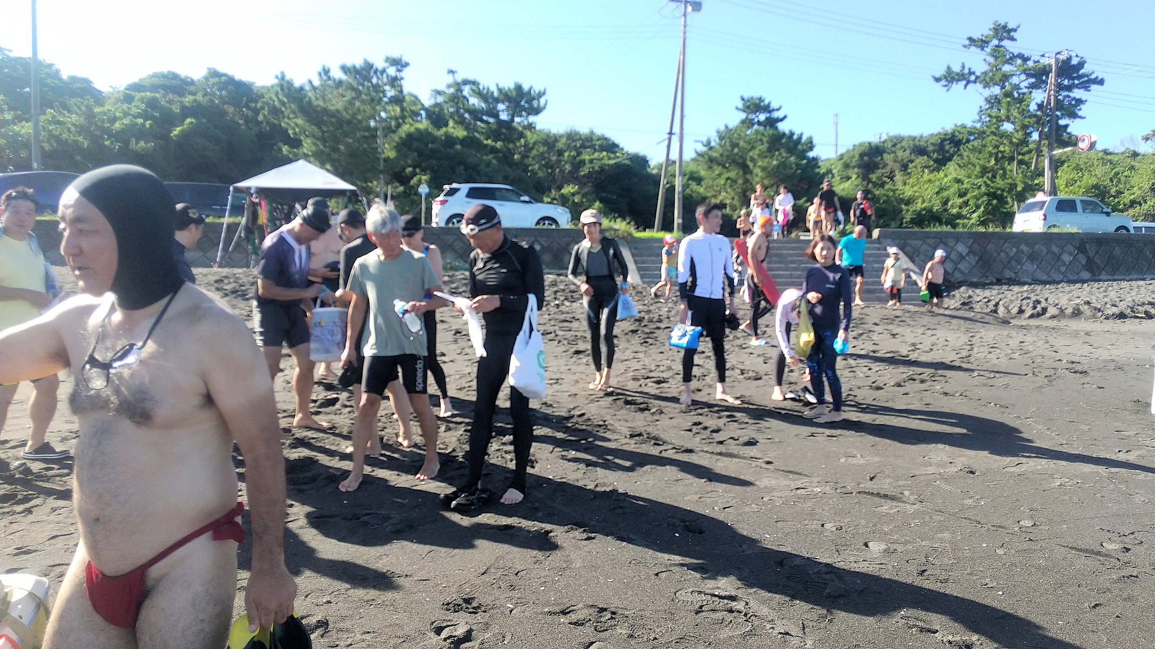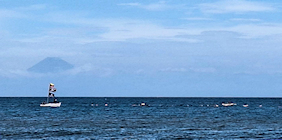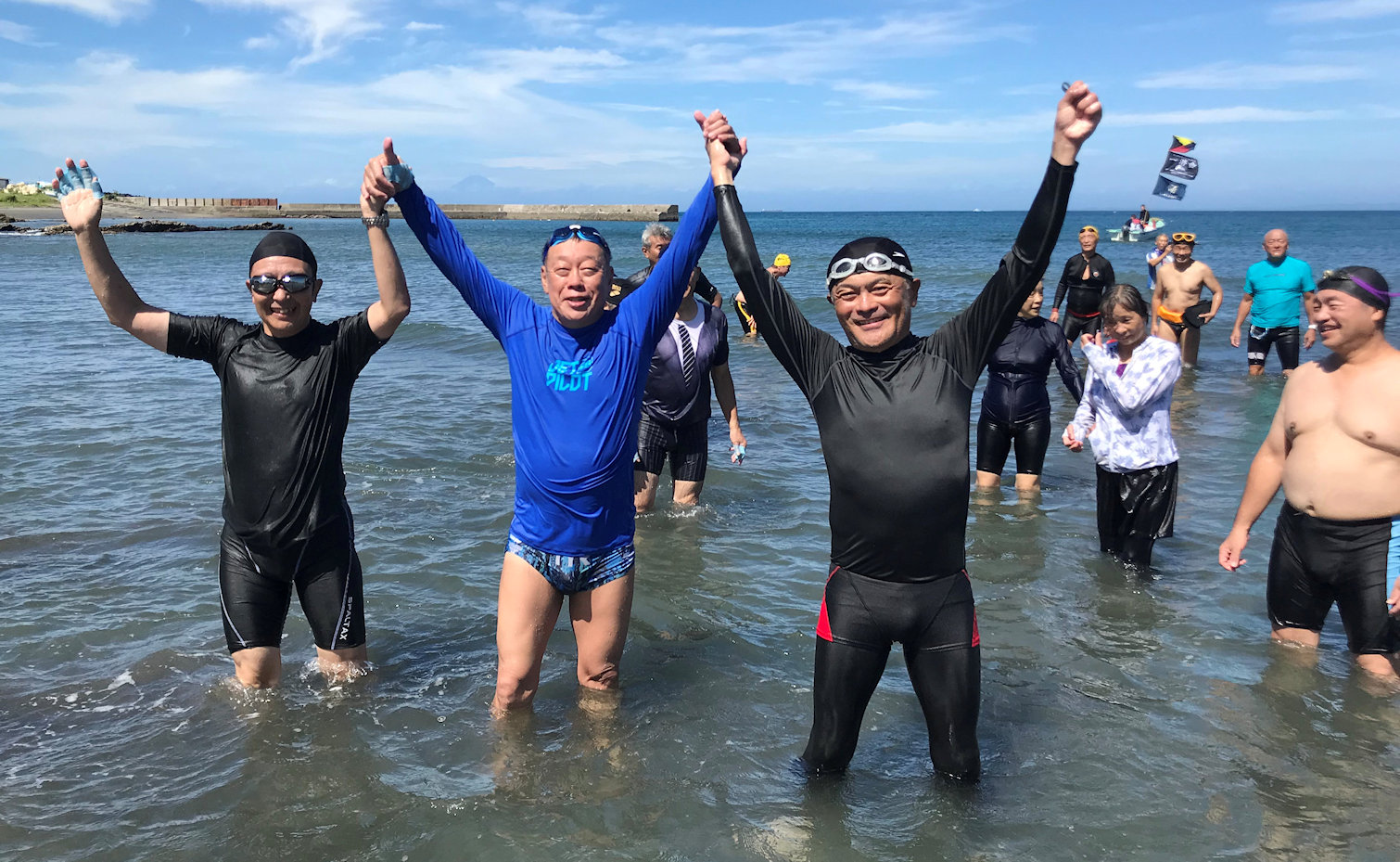 「遠泳を初めて拝見しました。富士山を拝みながら進む隊列は美しく、また浜に到着した皆様