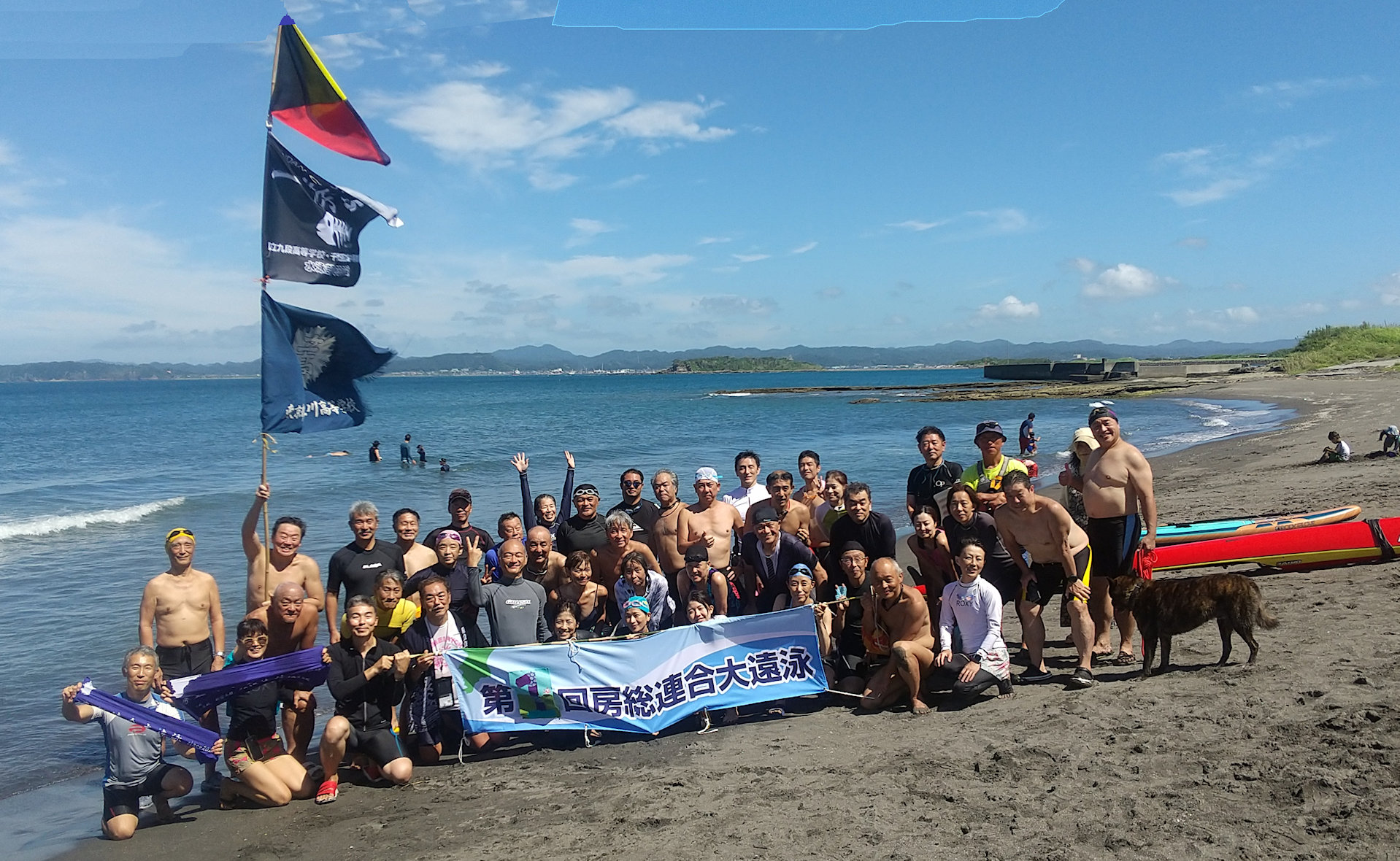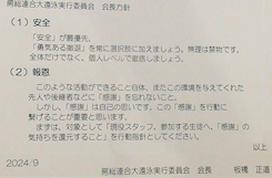 大遠泳の横断幕は、第x回の回数部分を毎年手作りで作成予定