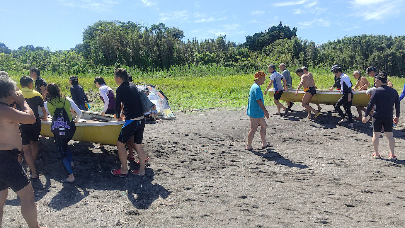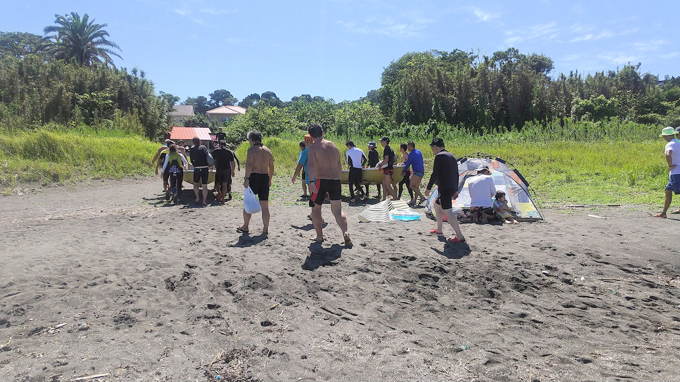 中間地点に上陸して小休止