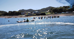 最終ゴール新宿高校館山寮前の浜を目指し出発