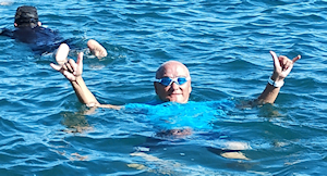 遠泳の先導者役 立川高校40期加藤さん