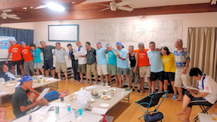 大遠泳前日のブリーフィング前のひと時(その2)
