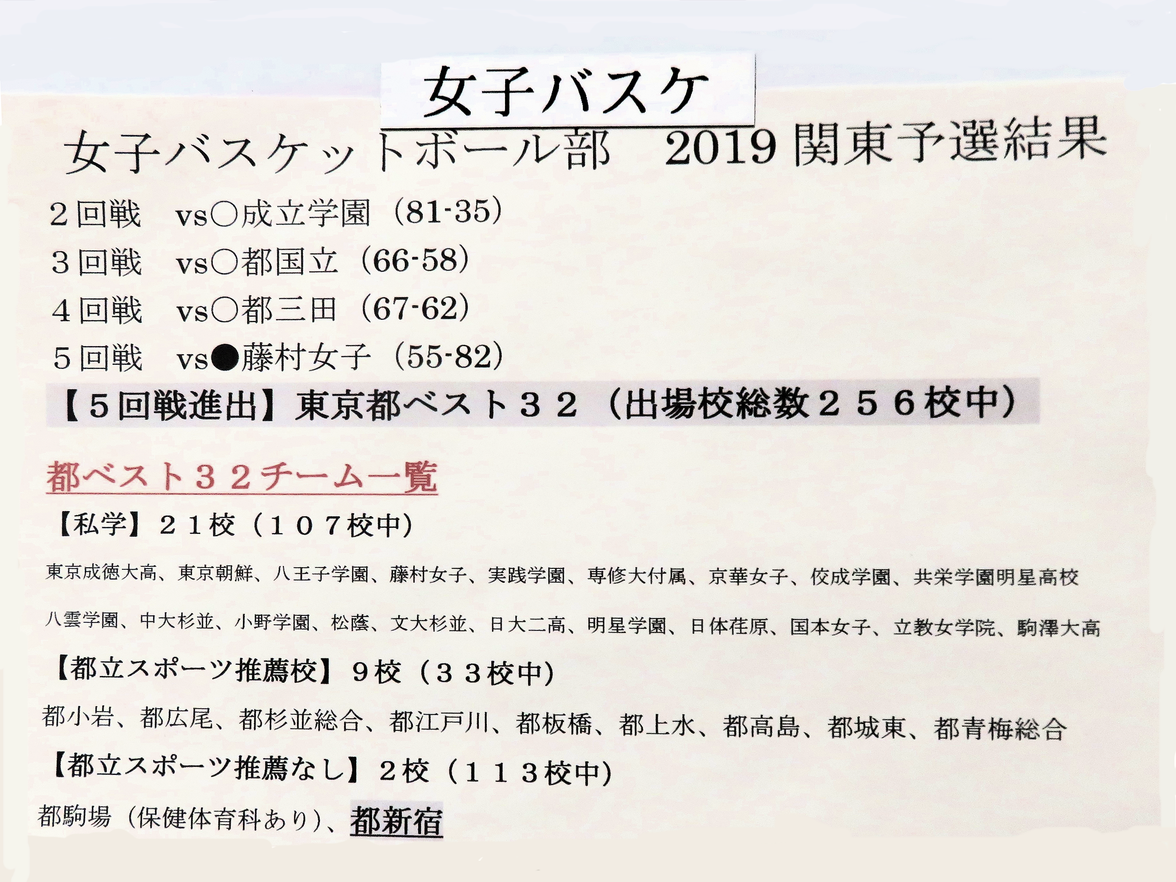 新宿高校女子バスケットボール部は、前年度の新人大会東京都ベスト32に続き、先月行われた関東大会予選において5回戦に進出し、東京都ベスト32という結果を残しました。