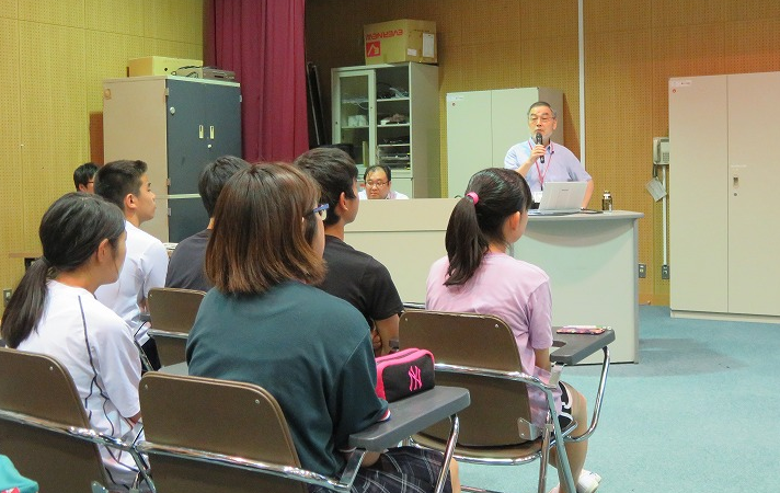 終業式を翌々日に控えた2018年7月12日(木)午後、馬場悠男さん(15回 人類学者 国立科学博物館名誉研究員 医学博士)が、母校生活指導部セーフティ教室の依頼を受けて、1年生、2年生、それぞれ320名を対象に、「熱中症予防対策と人類進化」と題して特別授業を行いました。