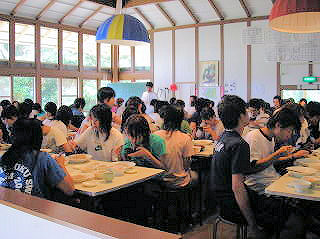 (午後の半遠泳に向けてのエネルギー補給中!)