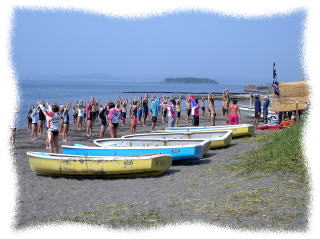 同窓会事務局が訪問したのは8月2日(水)でしたが、生徒、先生、OB、OG、及び寮のスタッフの方々が、一丸となって三日目の遠泳への挑戦に向けて館山の暑い日ざしの中、全力で頑張っていました。