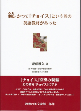 本書で齋藤さんは、駿河台予備校時代の英語科・奥井潔、鈴木長十の両先生が使用された予備校教材の古典『チョイス』と、受験英語は一切無視して、文学・人生を語りつついつか導かれる訳文の秀麗さ、大学時代を通じてこれに匹敵する授業は受けたことがないと心酔された奥井先生の想い出と、先生が『チョイス』の緒言に残された言葉を紹介されています。