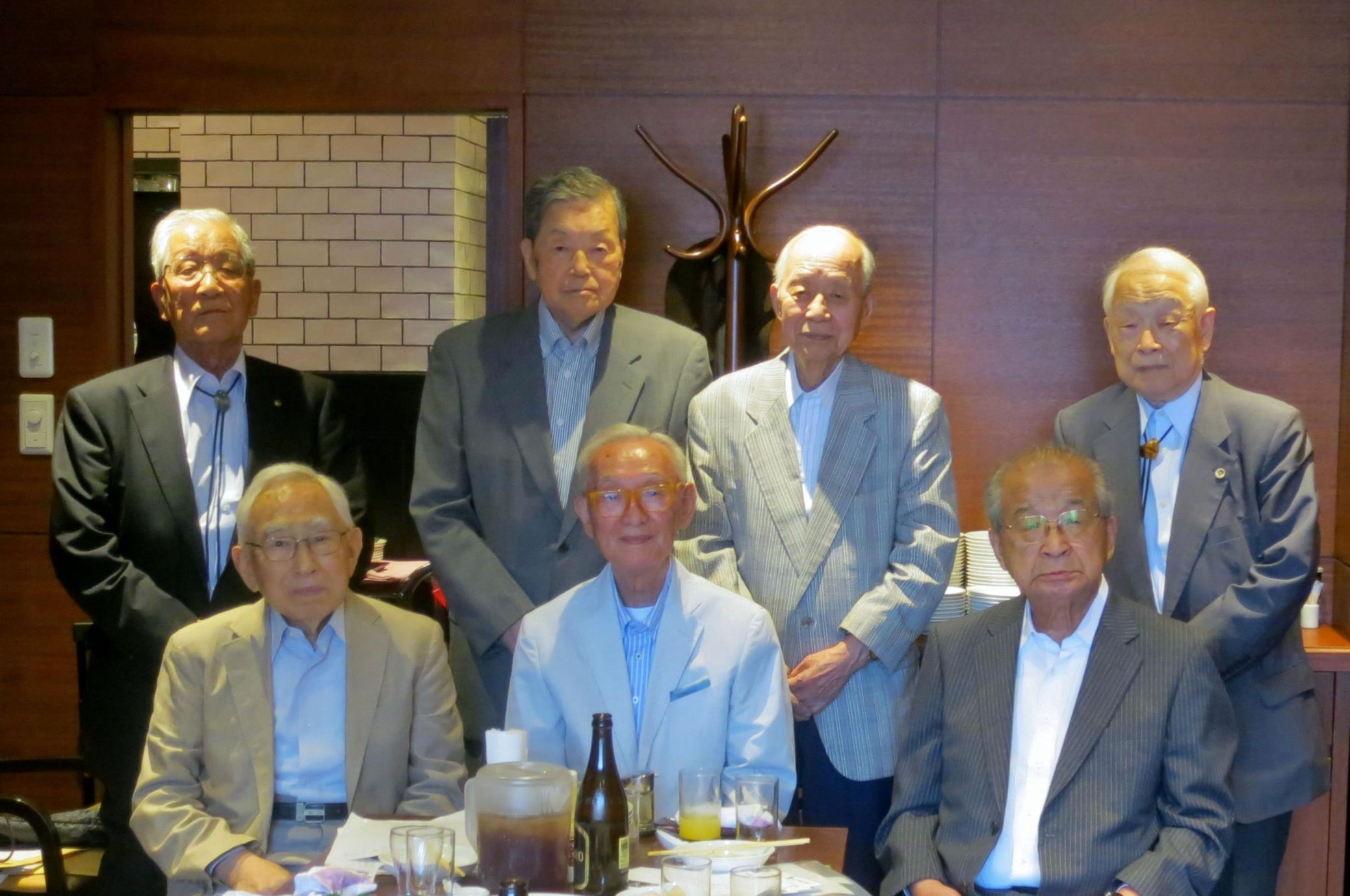 会は、正午から渡辺和郎君の開会あいさつに始まり、乾杯、事務報告のあと、しばらく歓談。そのあと全員が立って、近況、消息、軍歴、体験談、六中の思い出話などを次々に語り、記念撮影。次期世話人に渡辺、粕谷、山埜井の3人を決め、2時半過ぎに散会した。