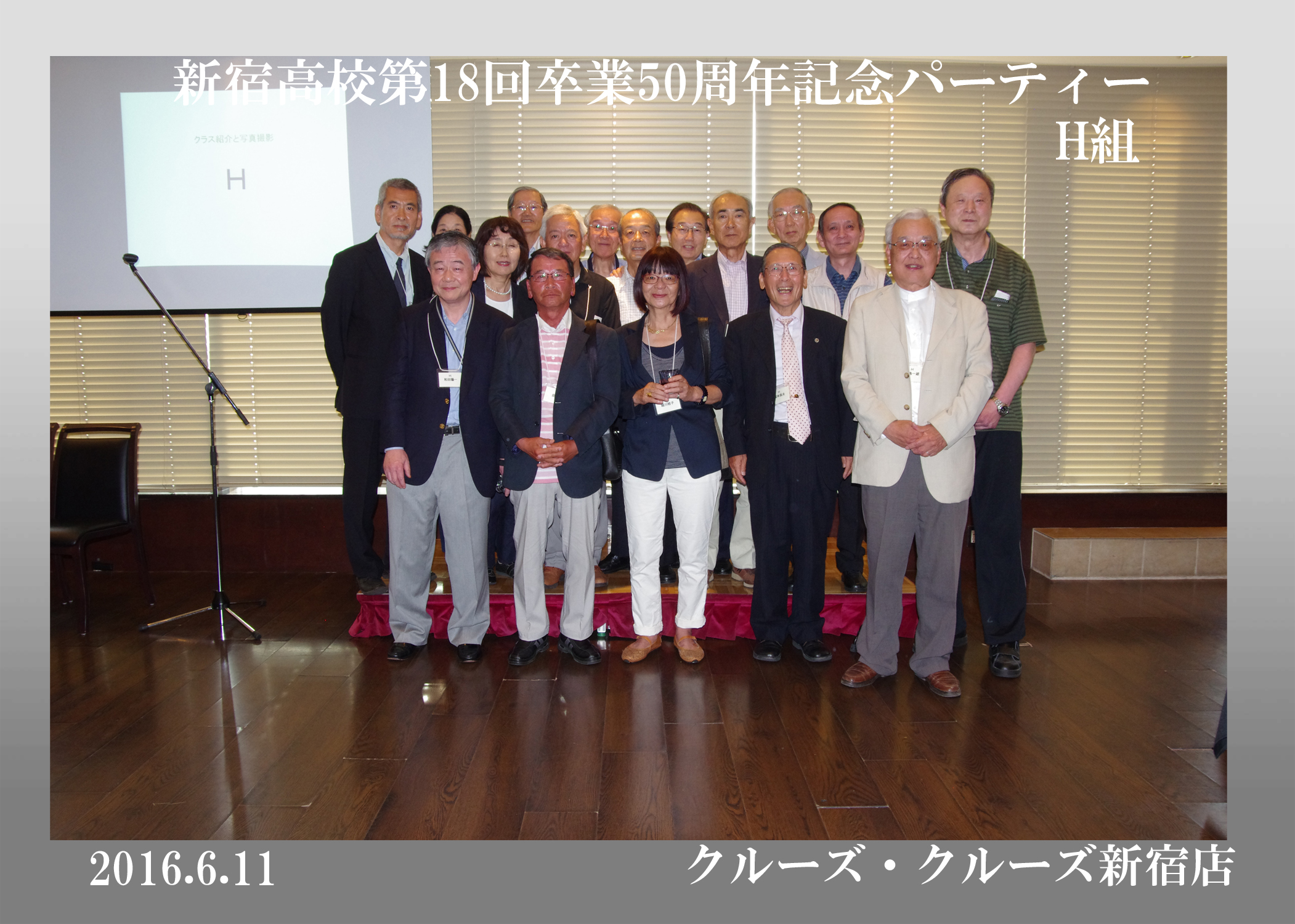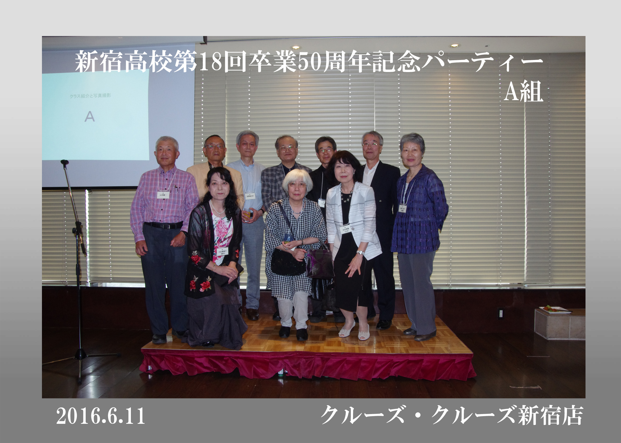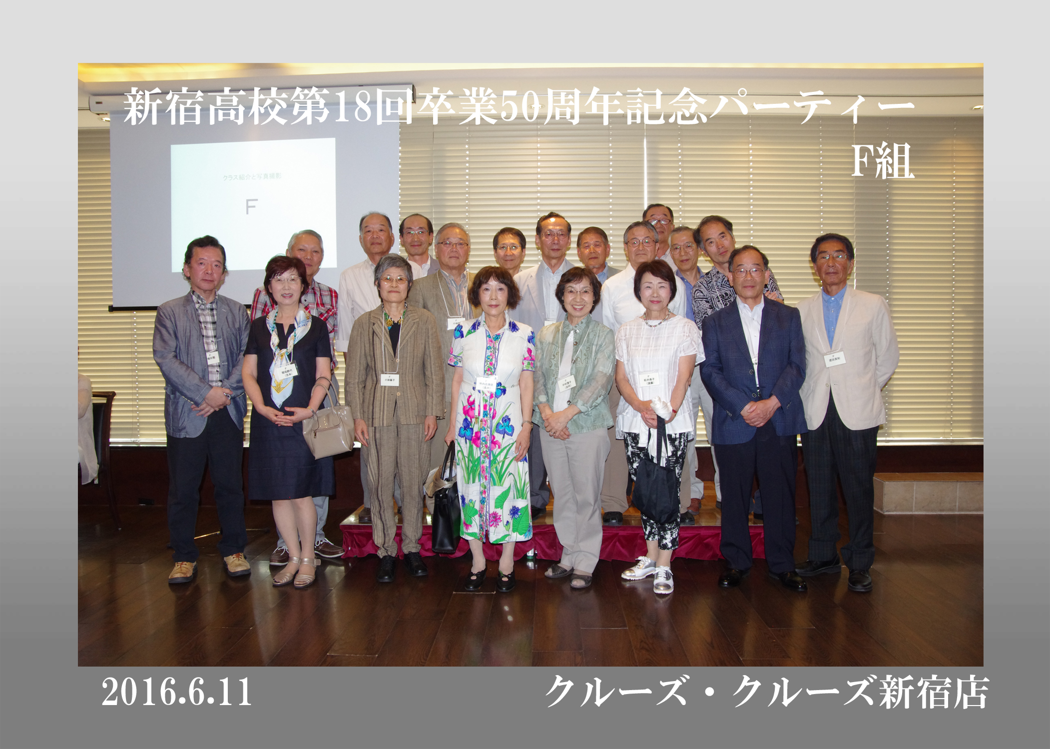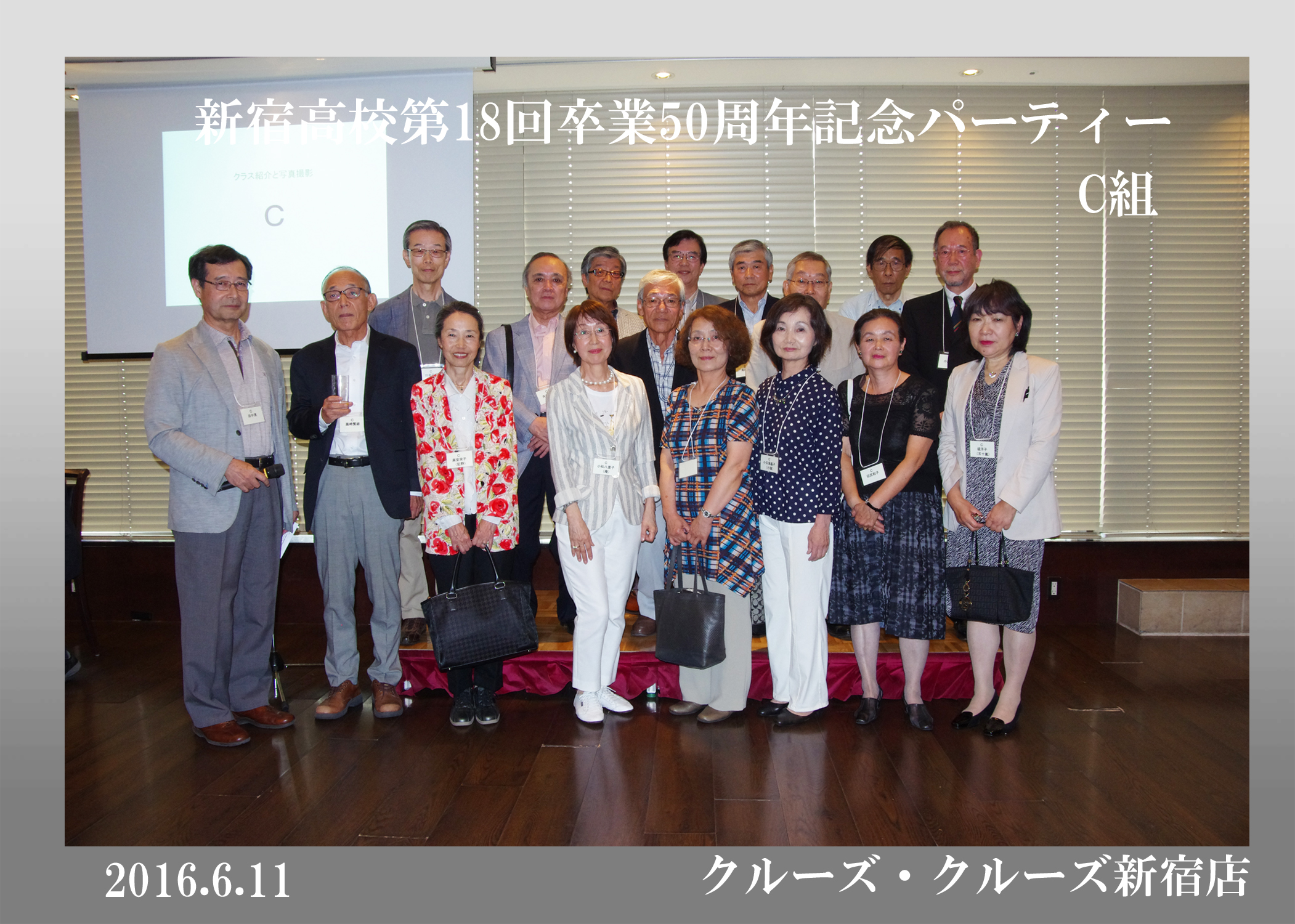 第18回生の卒後50周年同期会が平成28年6月11日、クルーズ・クルーズ新宿で開かれ、古稀を目前にした136人が懐かしい友人たちとの再会を喜び合った。