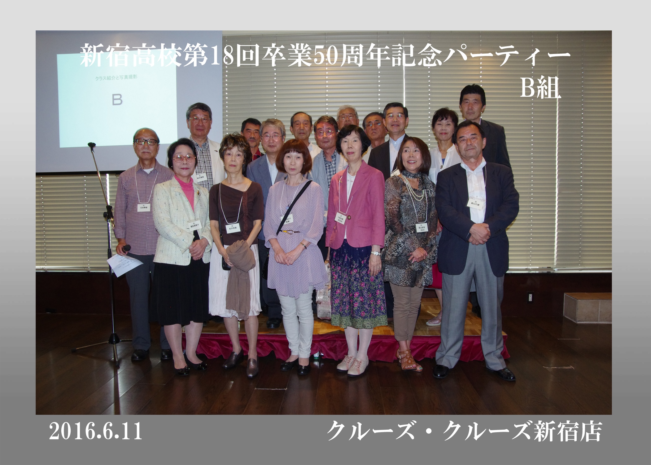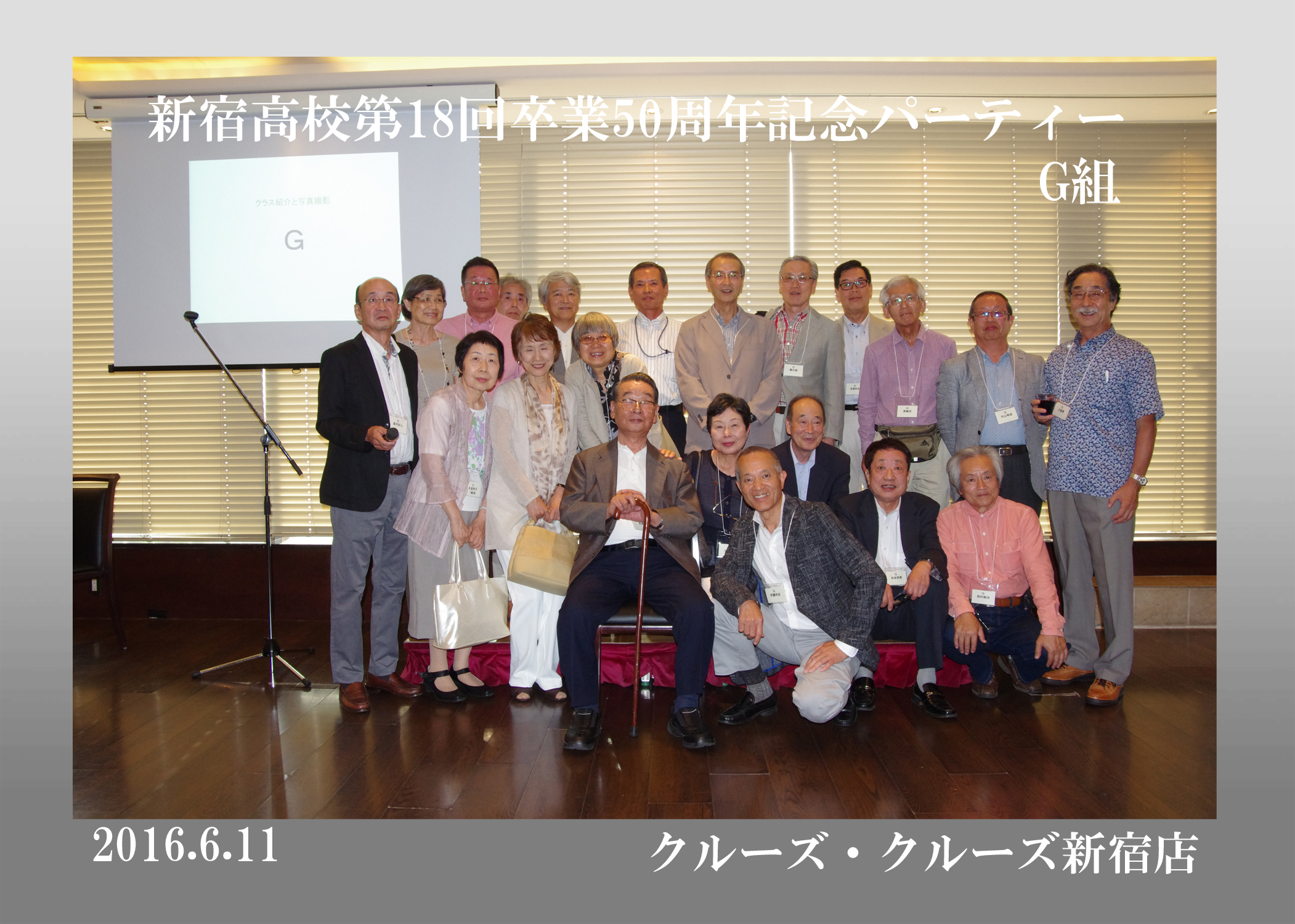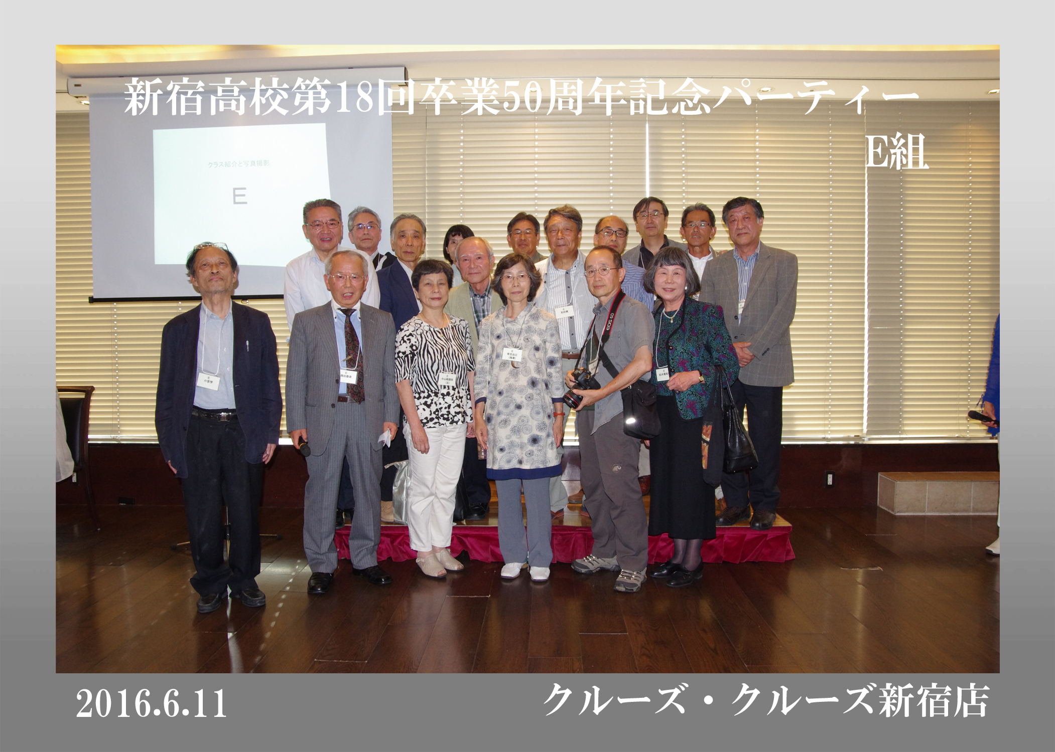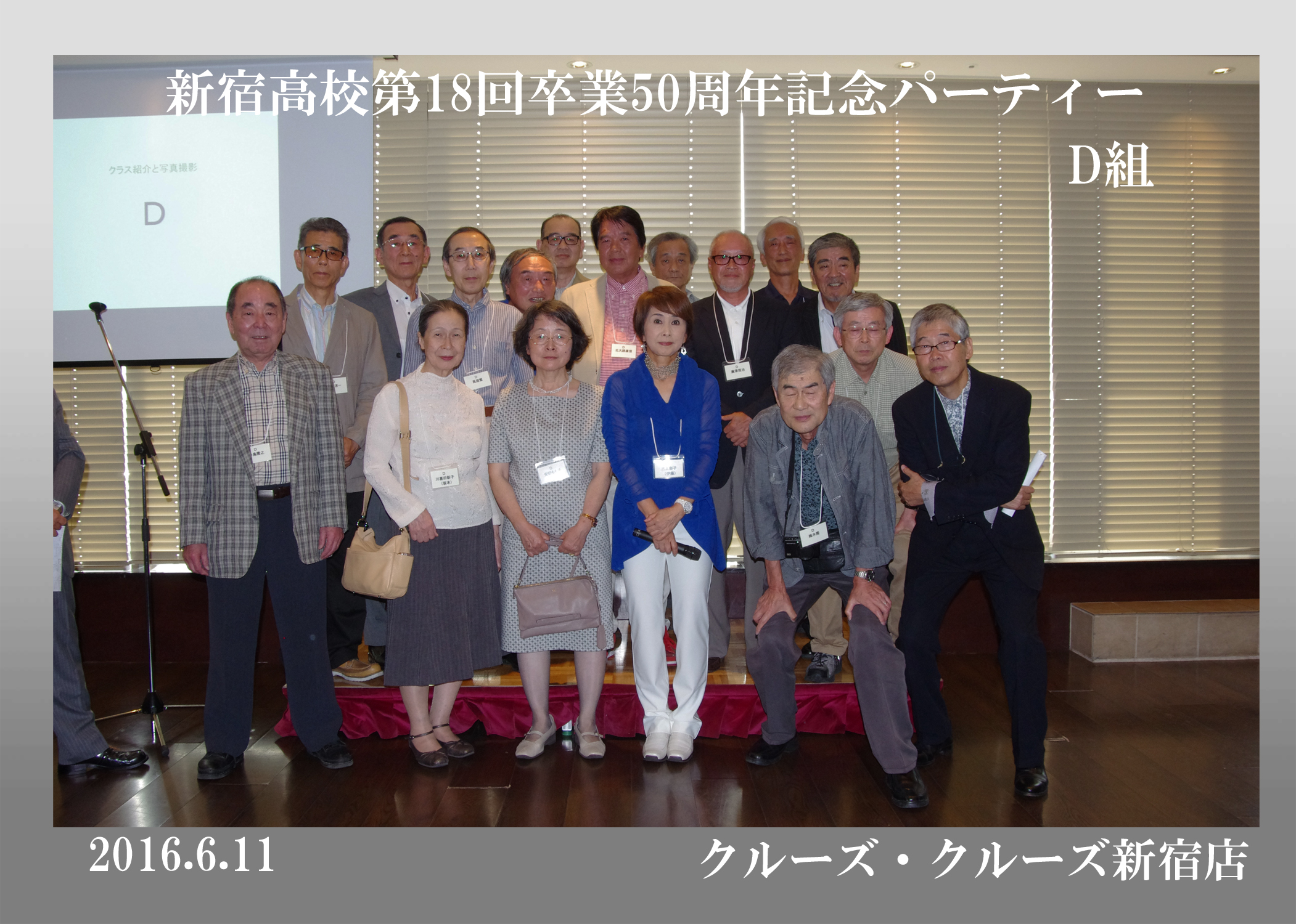 第18回生の卒後50周年同期会が平成28年6月11日、クルーズ・クルーズ新宿で開かれ、古稀を目前にした136人が懐かしい友人たちとの再会を喜び合った。