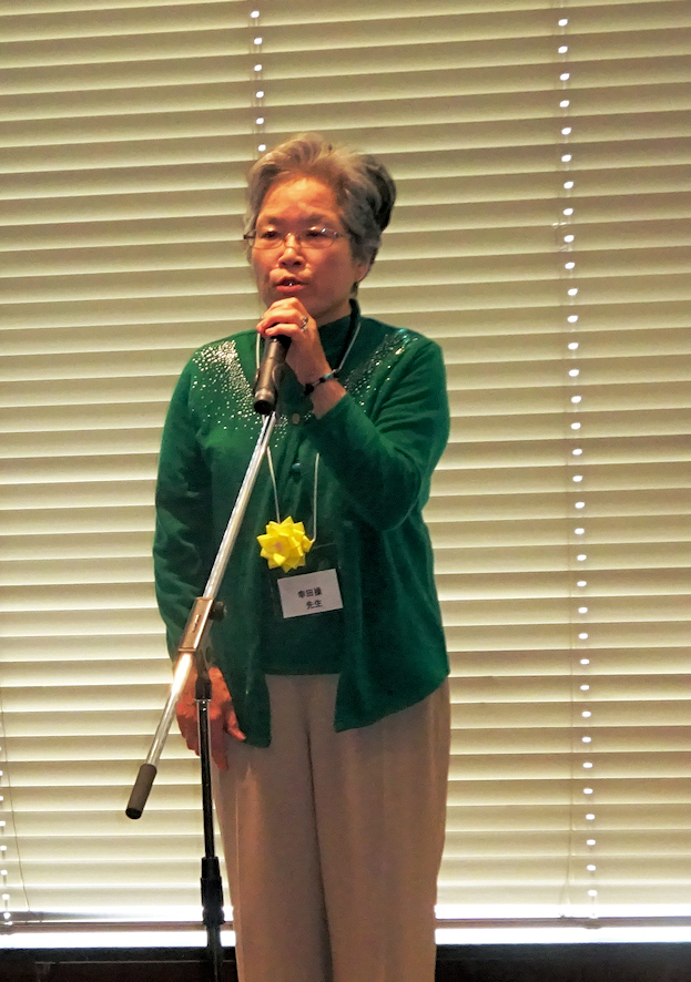 来賓の幸田(旧姓水野)操先生は「みなさんの在学中に東京オリンピックがあり、体育教師の塚脇伸作先生が体操のチームリーダーだったため、若かった久保先生や私が代わりを務めた」と、思い出を話した。