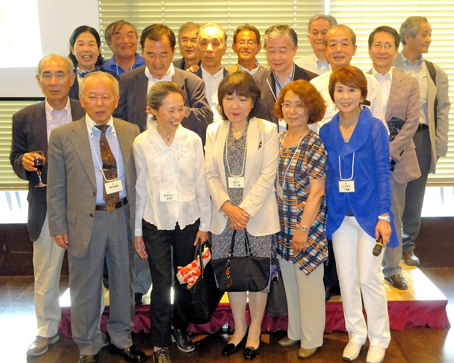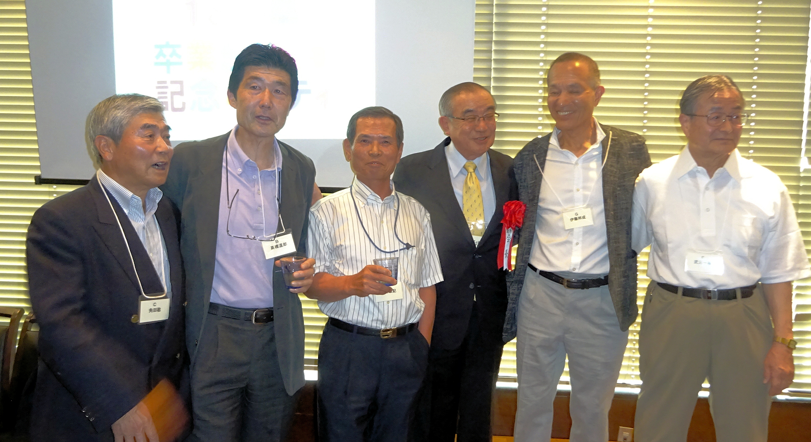 しばらく懇談した後、卒業時のクラス(2,3年次が同じクラス分け)毎に、クラス紹介と記念撮影。