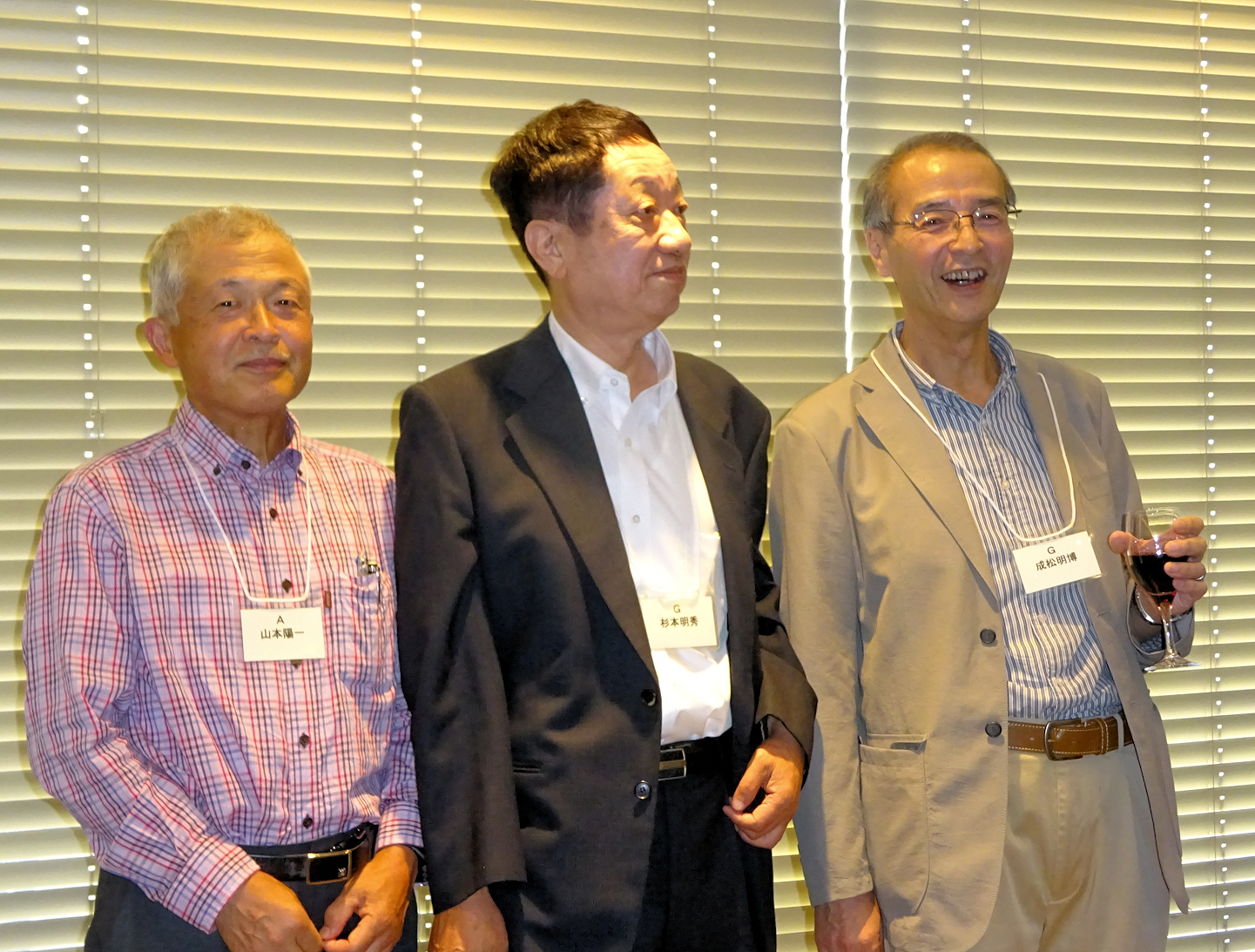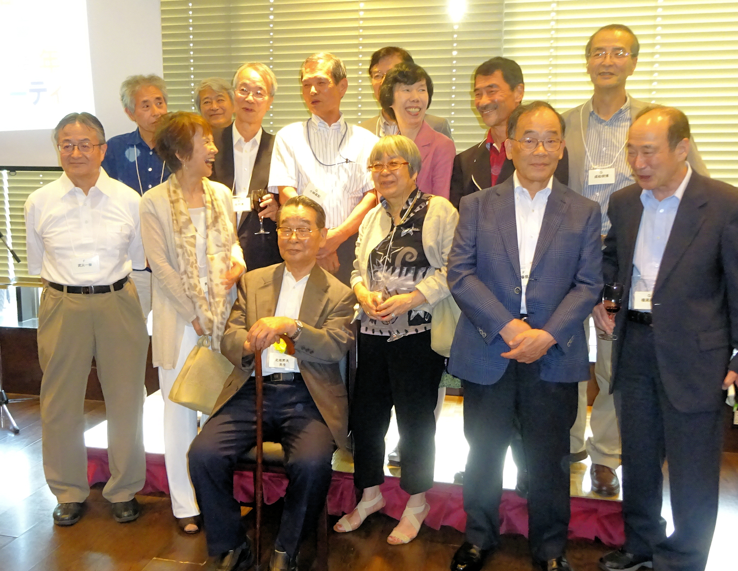 G組の担任だった北地節夫先生は「これから長く元気に生きていくためには、皆さんが一緒に歩いている昼陽会(散歩などの同好の士の集い)のような仲間同士の活動が大事」と乾杯の御発声。