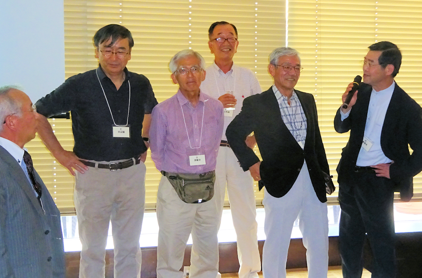 17回卒ながら我々18回の会合に参加くださった田中俊郎新同窓会長からは「創立百周年記念事業で在校生の奨学金充実や、館山寮の改築などに取り組んでいる、ぜひみなさんにも寄付金の協力をお願いしたい」とご挨拶。