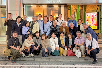 お店の前で記念撮影、福田君のプロの拘りに皆、固唾をのんで期待を寄せていました。 事前に設定した二次会は25名の参加でしたが、ここでも予定の2時間が瞬く間に過ぎて、またまた店の前で念入りな記念撮影が行われました。まだ18時を回ったばかりでは立ち去り難く、18名が三次会に突入。中には四次会をした方もいたとか。