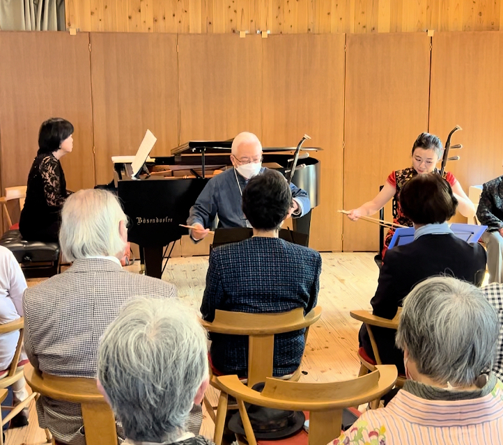 ・バスケOBの15回生櫻井勝様と周昂先生による二胡の演奏「春よ来い」独唱