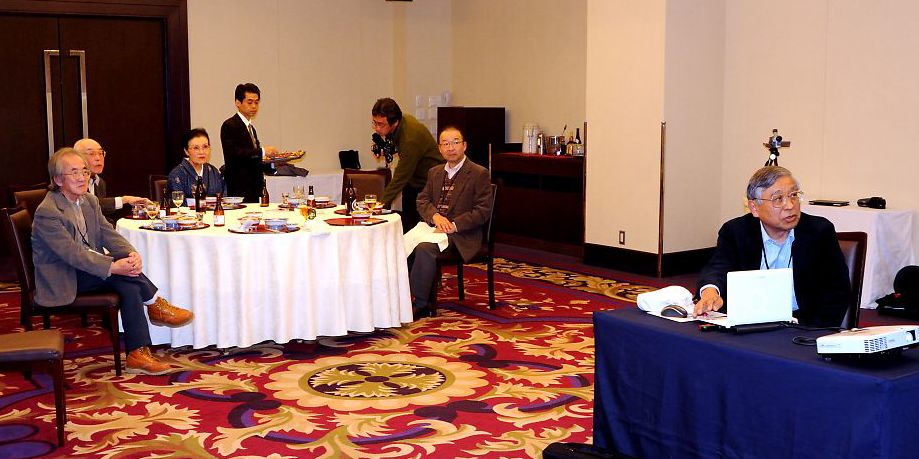 橋本氏による「母校の現況」のプレゼンテーションで圧倒的な女子の入学者数の多さに改めてビックリしたり「朝陽祭」の元気な姿にホッとしたりしました。実はこの総会は隔年11月の第二土曜日に開催されるはずでしたが開催年の昨年はよんどころない事情で一日ずらしての日曜に開催となり、会員の多くの方の都合が付かず少人数の開催になってしまいました。この場をお借りして参加を予定していらした多くの方々に深くお詫び申し上げます。その欠席連絡を下さった方々の近況通信欄を参加者で見ながら次回はお会いしたいものと話をしました。