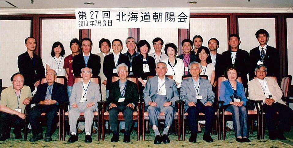 第27回北海道朝陽会は、平成22年7月3日(土)午後6時半から札幌グランドホテルで、寶示戸貞雄先輩(中20)、遠藤象三先輩(中21)から59回の杉原雄一君、60回の土肥かおりさん、更には朝陽会本部からは橋本恵堅副会長にもご出席頂き、総勢24名で夏の北海道の夕を共に過ごしました。