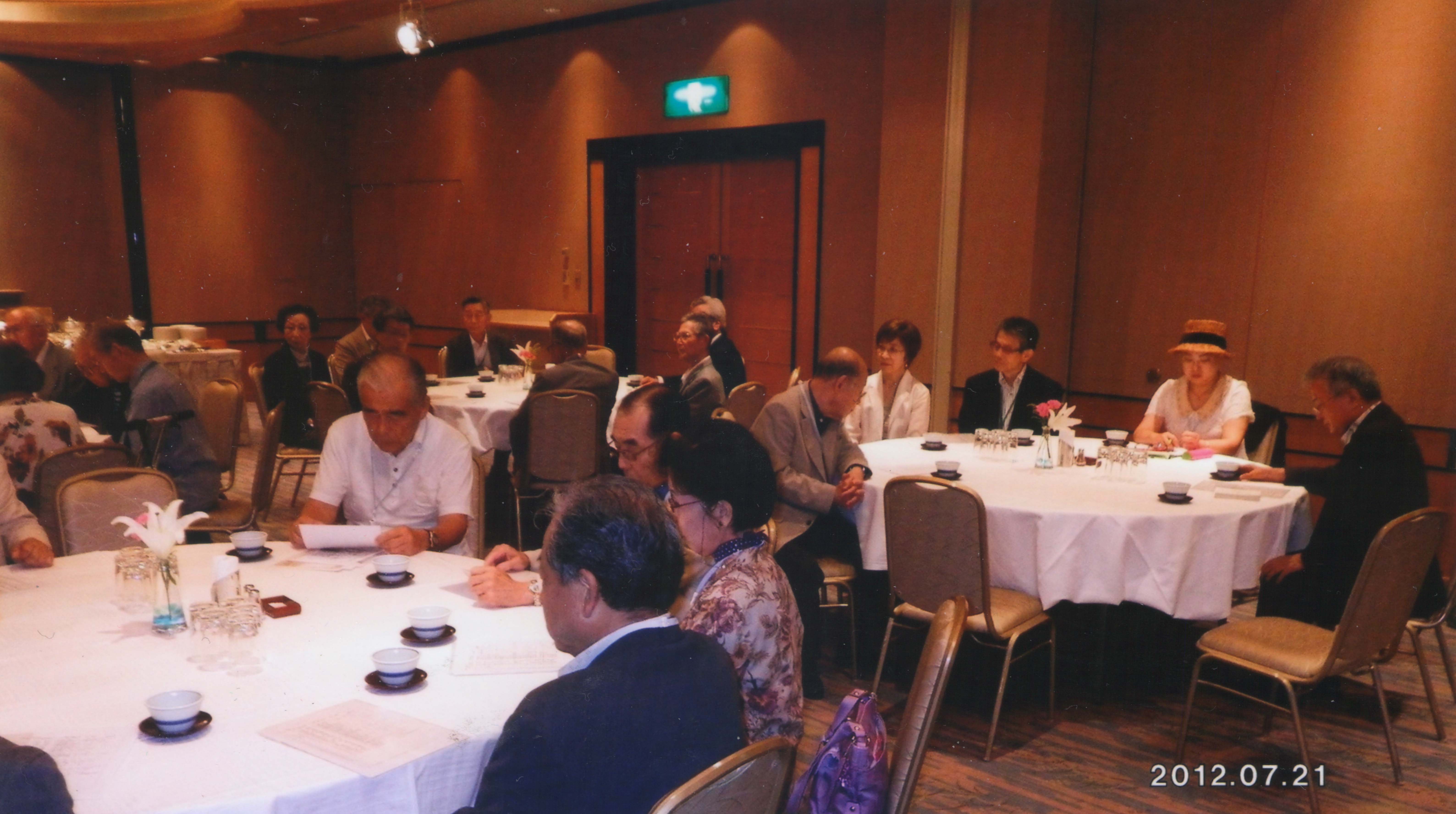 梅雨が明けた割には肌寒く、上物を一枚羽織りたくなるような天候の中、平成24年7月21日(土)18:00より第10回多摩ニュータウン朝陽会総会が、31名の出席者を得て、京王プラザホテル多摩 たまつばきの間にて本年も開催されました。