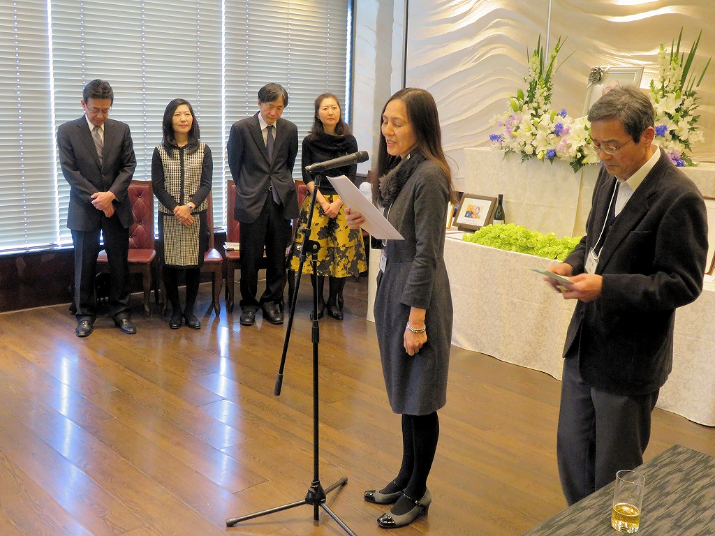 先生の奥様は風邪のため出席されませんでしたが、ご長女上滝真紀さまご夫妻、次女の吉田有紀さまご夫妻、4名のご家族の方が出席くださいました。