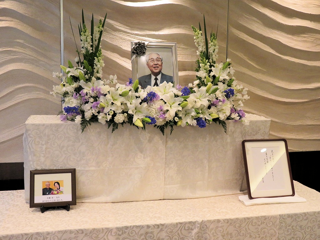 最後にご家族を代表して、上滝真紀さまから「父の一生は新宿高校とともにありました。こうして新宿高校の縁に結ばれた皆さまに送って頂いてとても喜んでいるに違いありません」とお礼の言葉があり、定刻の14時に閉会されました。