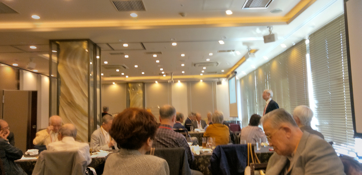食事の後は歓談の時間となり、合間を見て22回生から入手した初代校舎の写真を上映して昔を思い出し懐かしんで頂きました。会の終わりになって何人かの方にスピーチをお願いしましたが、「折角だから来年も同期会を開催し、皆で米寿を祝おう」との発言も飛び出し、来年の開催も決まりました。